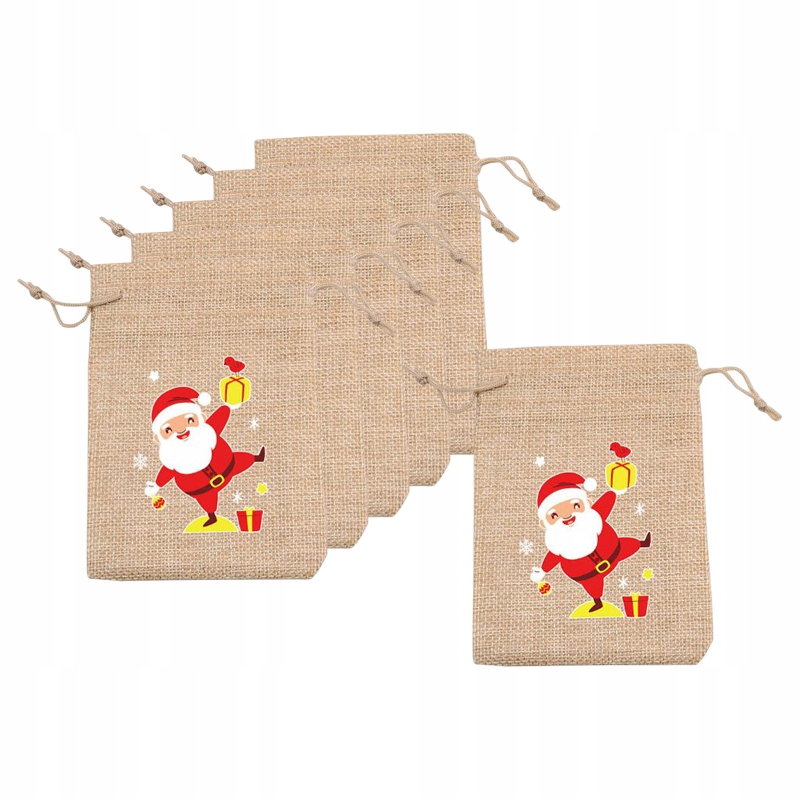 6 шт., джутовая сумка на шнурке с рождественским узором, 4x5,5 дюйма, подарки для вечеринок от Санта-Клауса