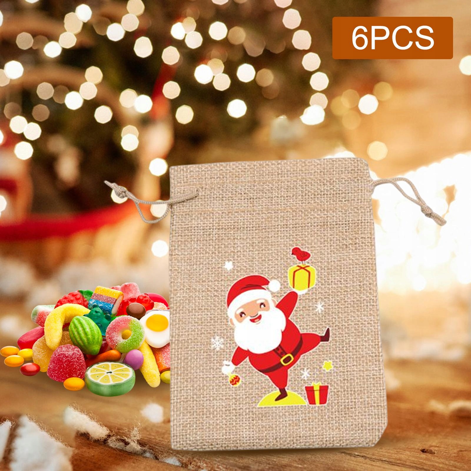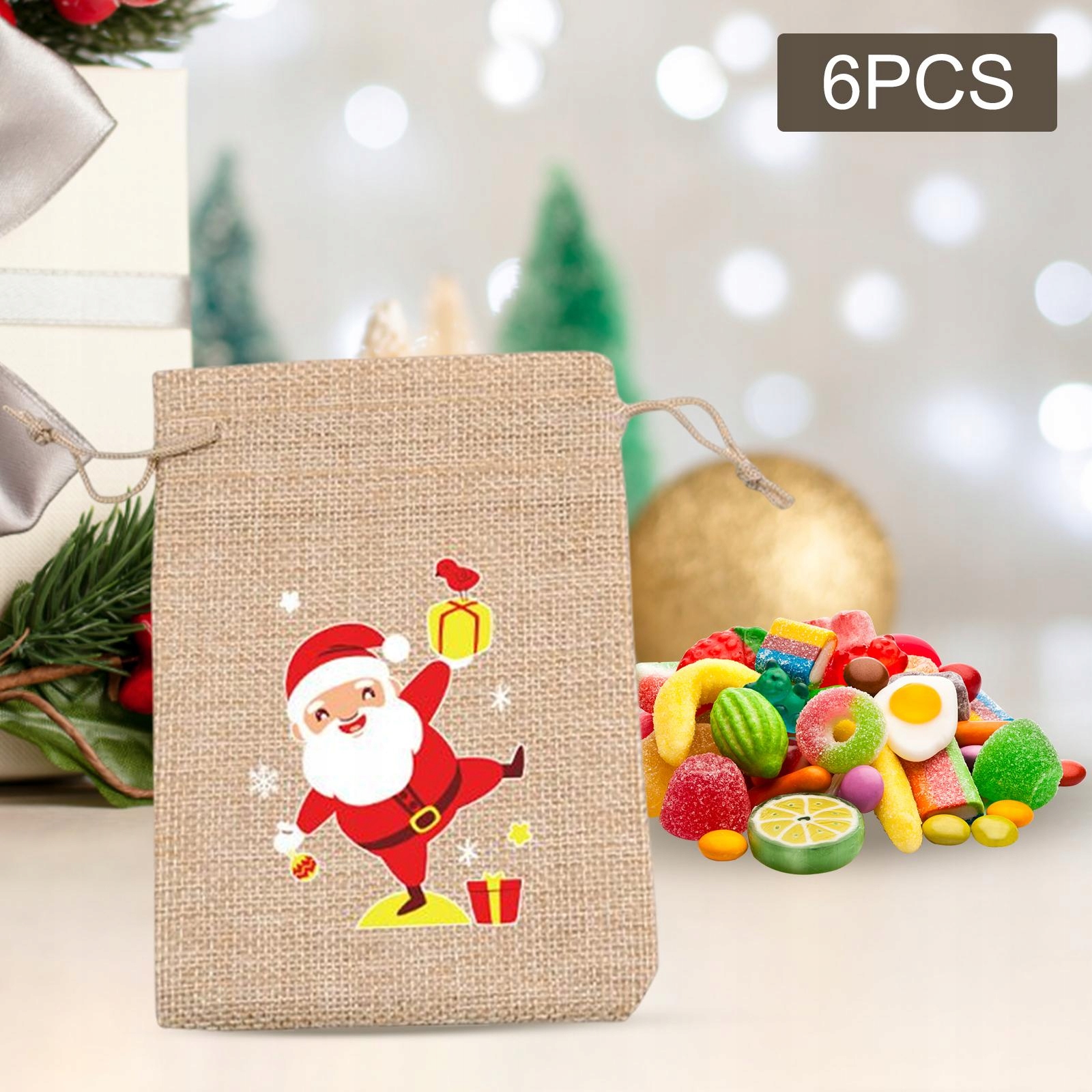 6 шт., рождественские подарочные пакеты из мешковины на шнурке, 4x5,5 дюйма, моющиеся, Санта-Клаус