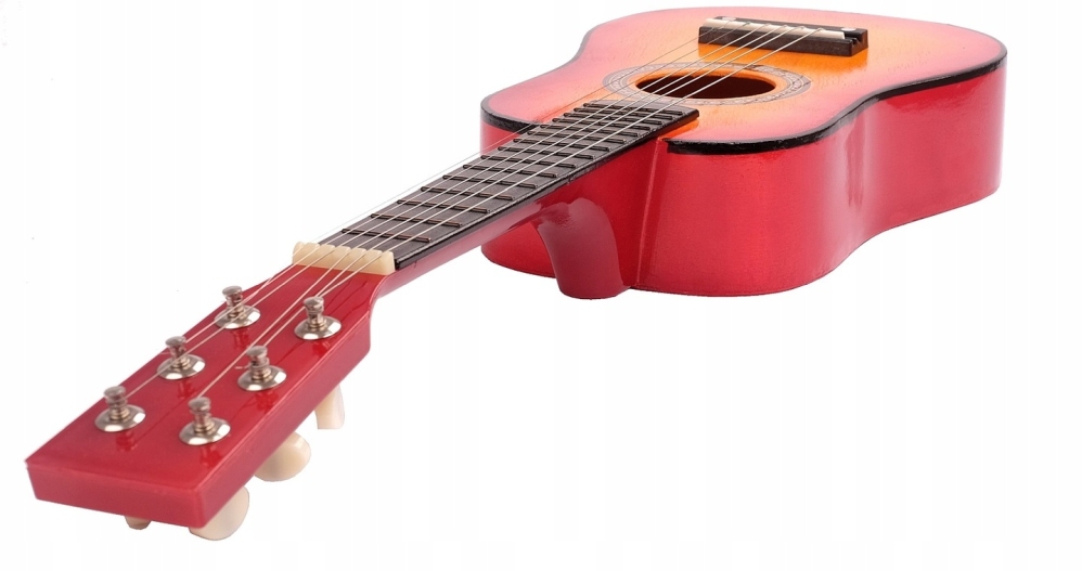 Гитара имеет 6 металлических струн разной толщины и высоты звучания, это первый инструмент для детей, размер идеально адаптирован для маленьких ручек.