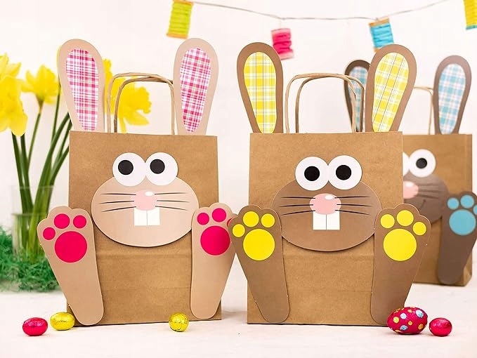 - Вам даже не нужны ножницы для DIY, потому что все части зайцев в картонных листах предварительно. просто сжимайте их, привяжите их к сумке - и это готово!