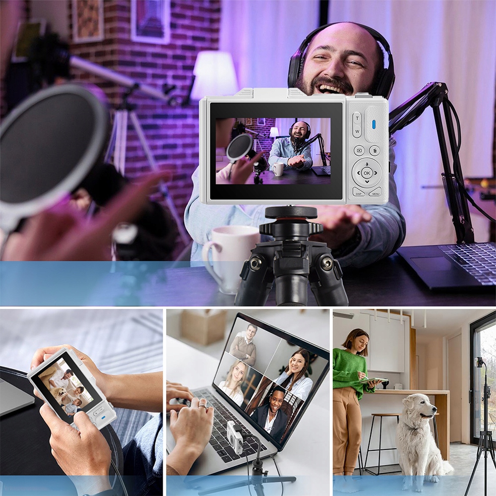 Являясь перезаряжаемой камерой для видеоблогов, она обеспечивает простоту использования для потоковой передачи в реальном времени и веб-трансляций. После подключения к компьютеру через USB-кабель вы можете наслаждаться видеозвонками в Skype или прямыми трансляциями на таких платформах, как TikTok, YouTube, Facebook и других социальных сетях. Простота зарядки через USB и передача файлов, а также функция веб-камеры делают ее идеальной цифровой камерой для фотосъемки, ведения видеоблогов и обмена информацией в социальных сетях.
