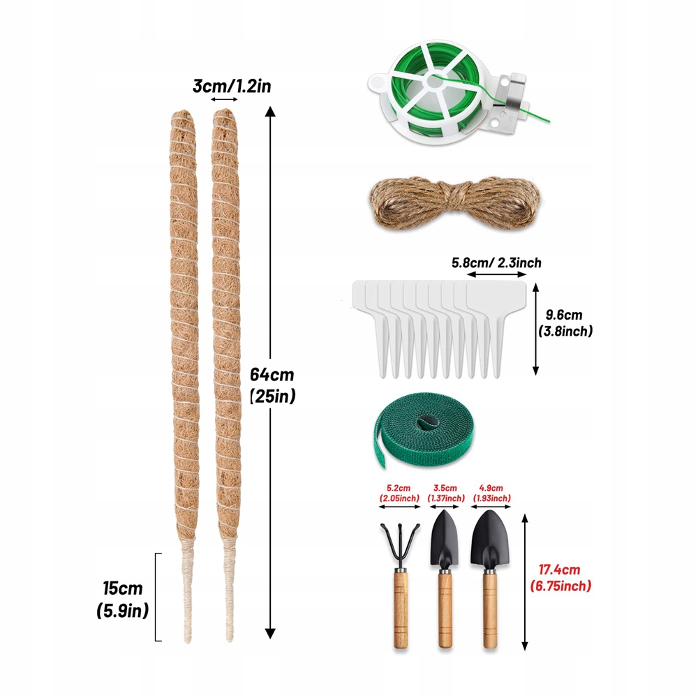 🪴 аксессуаров, включенных в комплект: В дополнение к палке, вы также получите 2 мха джута. Вы можете свободно разрезать длину джутовой веревки в соответствии с различными растениями, что является более стабильным и красивым