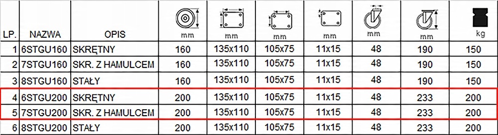 67stgu200/40 Koło fi 200 rusztowanie komplet 4 szt.