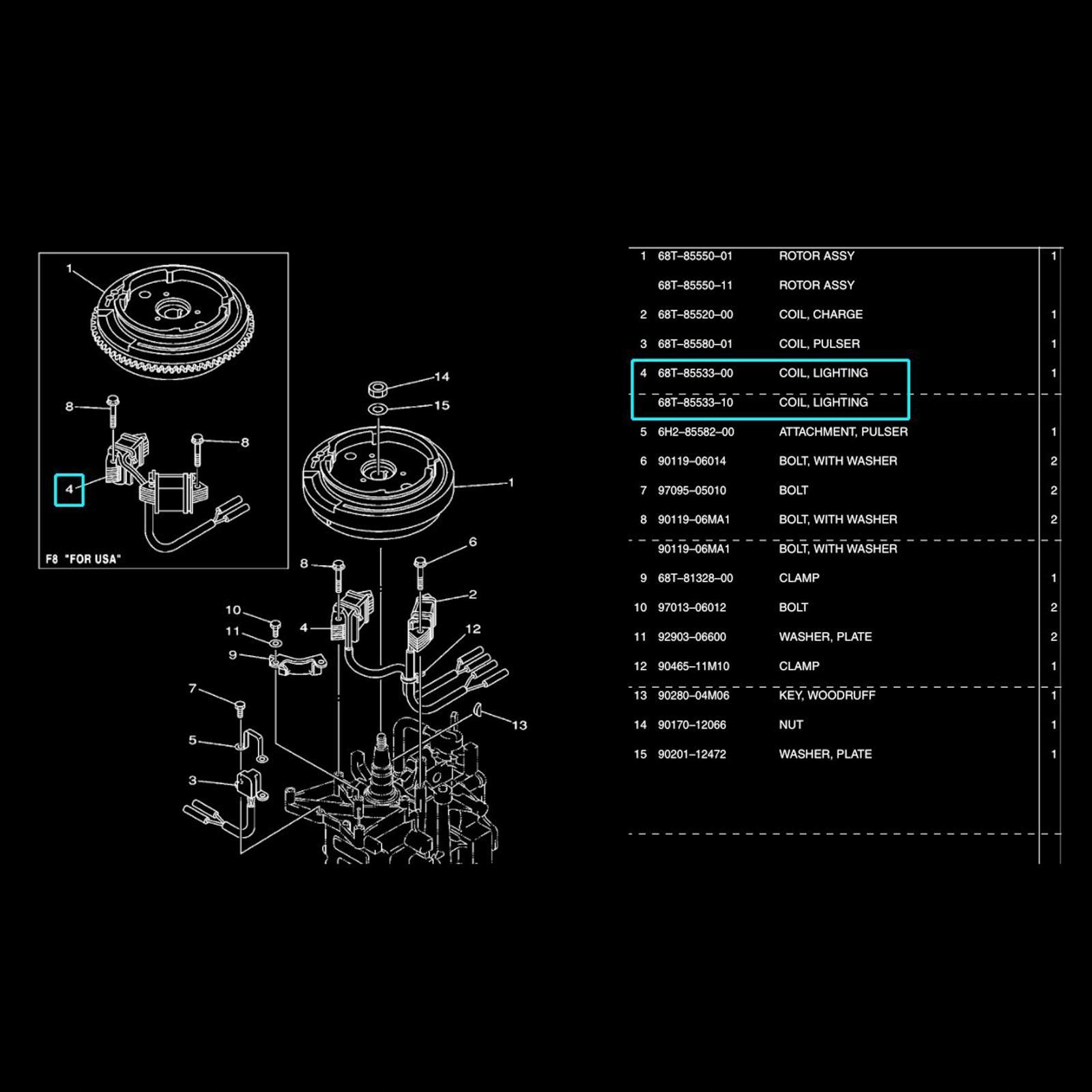 68T , Освітлювальна котушка, підходить для ходу підвісного човнового двигуна Yamaha 68T , 66M