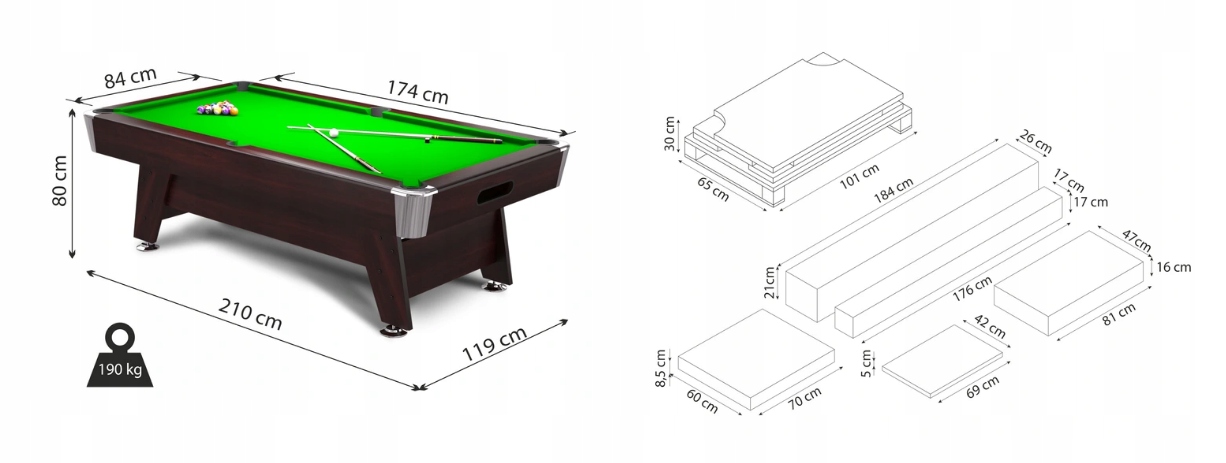 Radley Diamond с каменной плитой — элегантный и функциональный бильярдный стол, который идеально подходит как для частных домов, так и для коммерческих помещений. Благодаря усовершенствованной системе подачи мячей и универсальным размерам стол оправдывает ожидания даже самых требовательных игроков. Каменная плита из итальянского сланца гарантирует точную и динамичную игру, которая удовлетворит как любителей, так и профессионалов. Наши бильярдные столы изготовлены с максимальной тщательностью и вниманием к каждой детали, что обеспечивает максимальный комфорт и удобство во время игры.