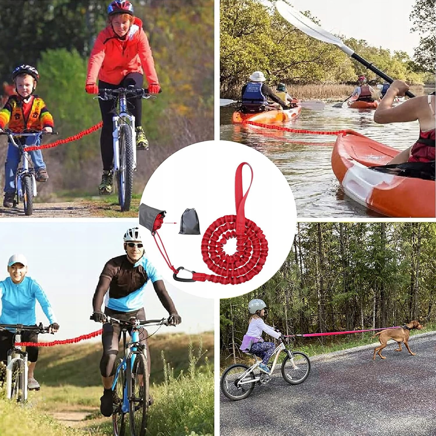 🚵🏻♂️ - 【Высокое качество】: Буксировочный трос изготовлен из высококачественного и прочного нейлонового материала, он прочный, эластичный и амортизирующий, что обеспечивает комфортную буксировку в гору. Он оснащен пряжкой из сплава с многократной амортизацией и защитной конструкцией, облегчающей езду.