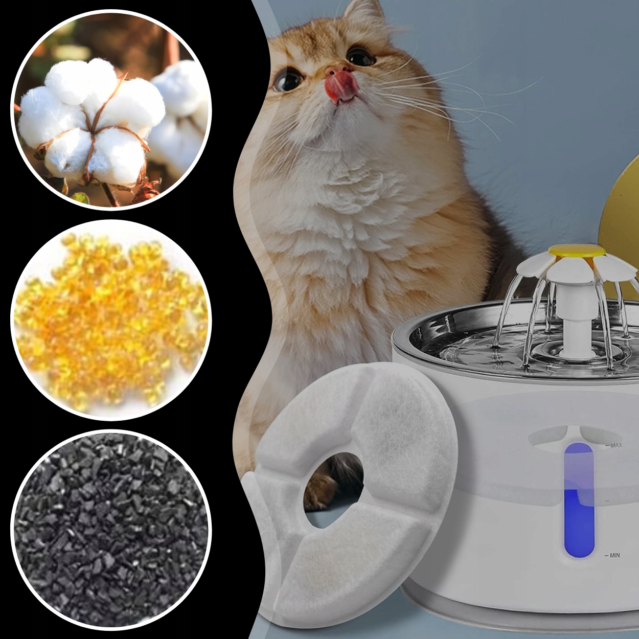 ✔️Улучшает качество воды✔️Удаляет загрязнения, улучшая вкус и запах воды, что побуждает вашего питомца пить .