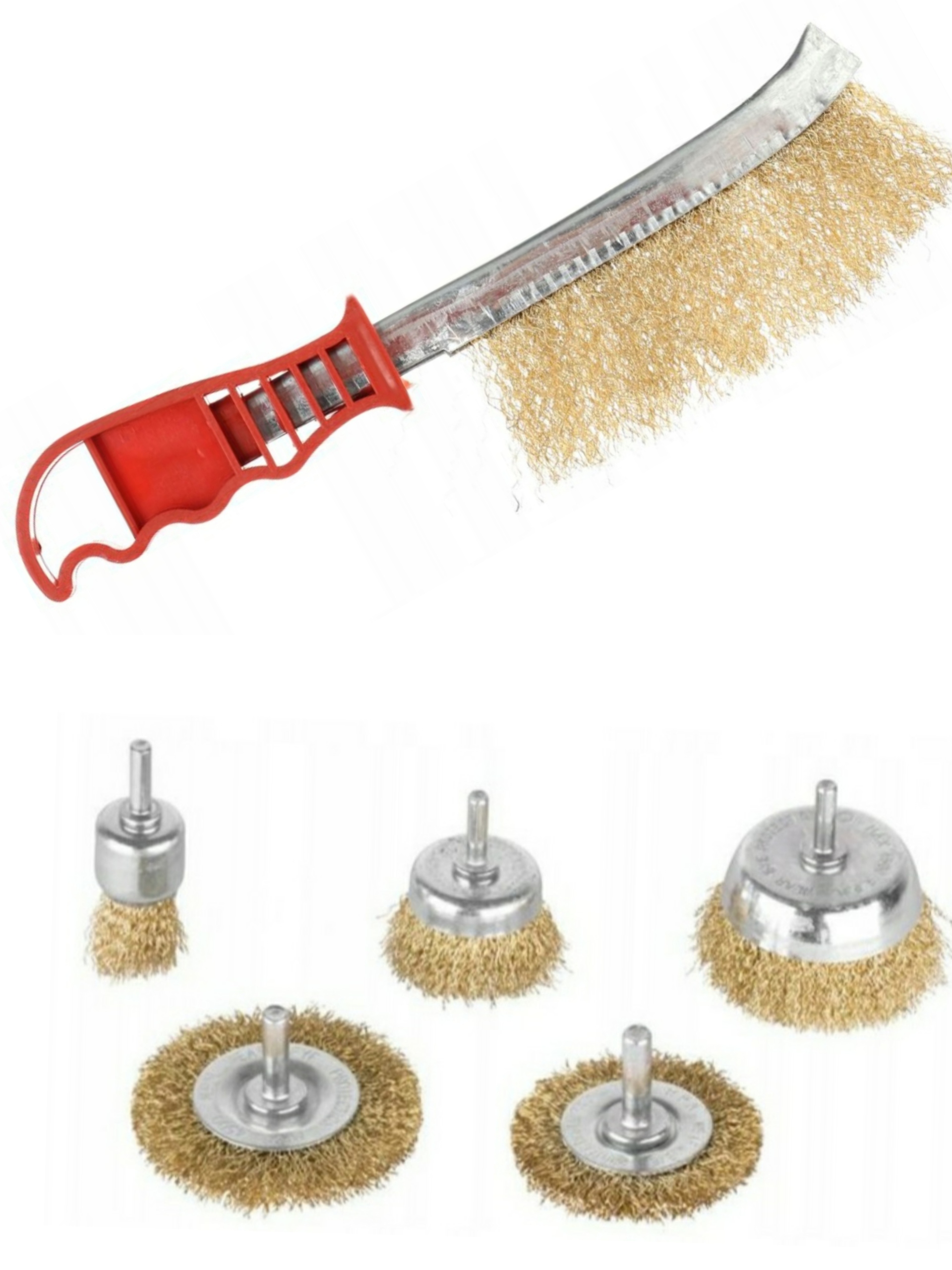 Щетка изготовлена из высококачественной гофрированной латунной проволоки. Предназначен для очистки металлических поверхностей от ржавчины, краски, лака, а также для очистки сварных швов и резьбы. Ручка изготовлена из прочного пластика с высокой устойчивостью к поломке.