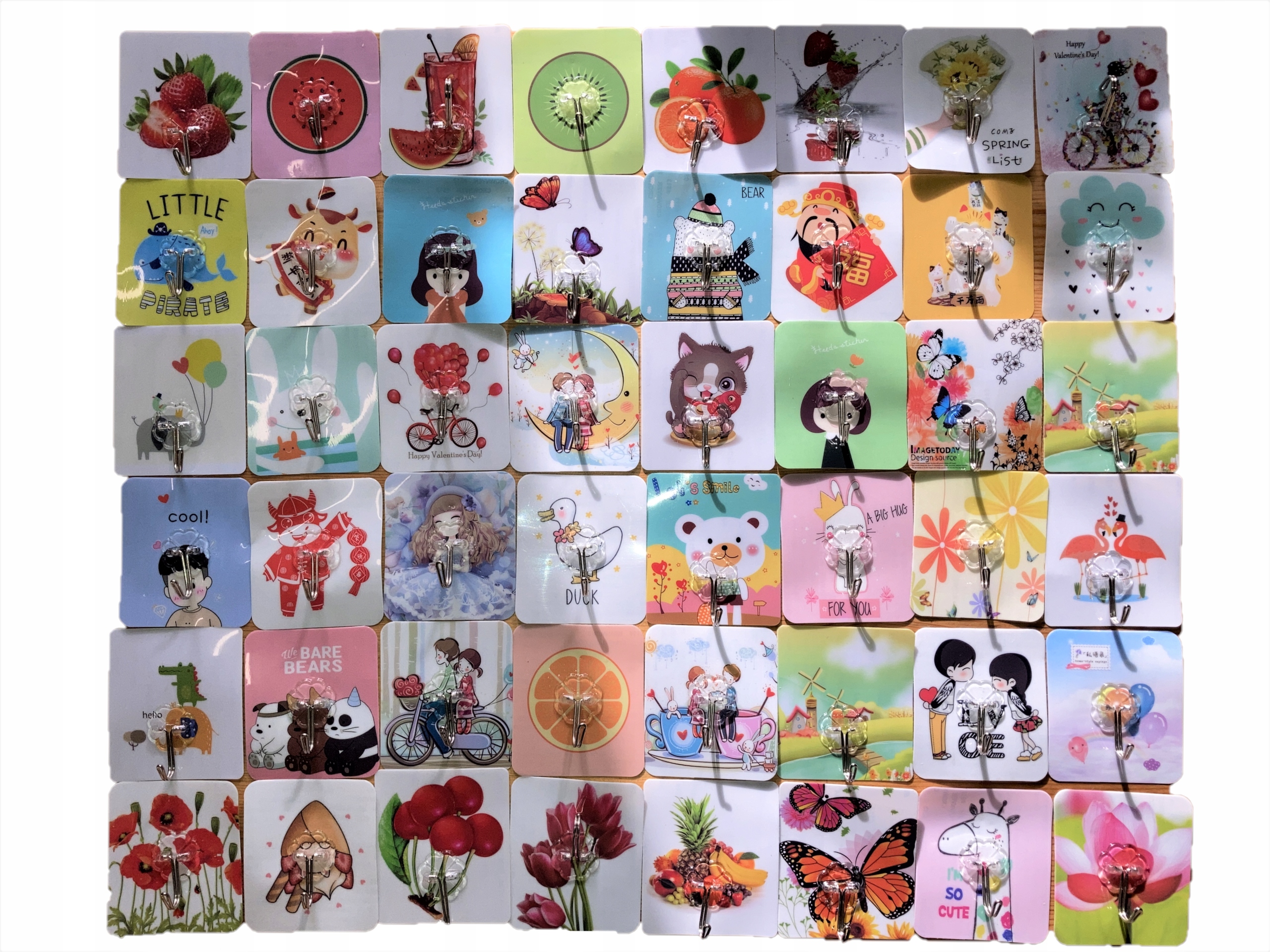 6X САМОКЛЕЯЩИЕСЯ КРЮЧКИ КРЮЧКИ ЦВЕТНЫЕ УЗОРЫ