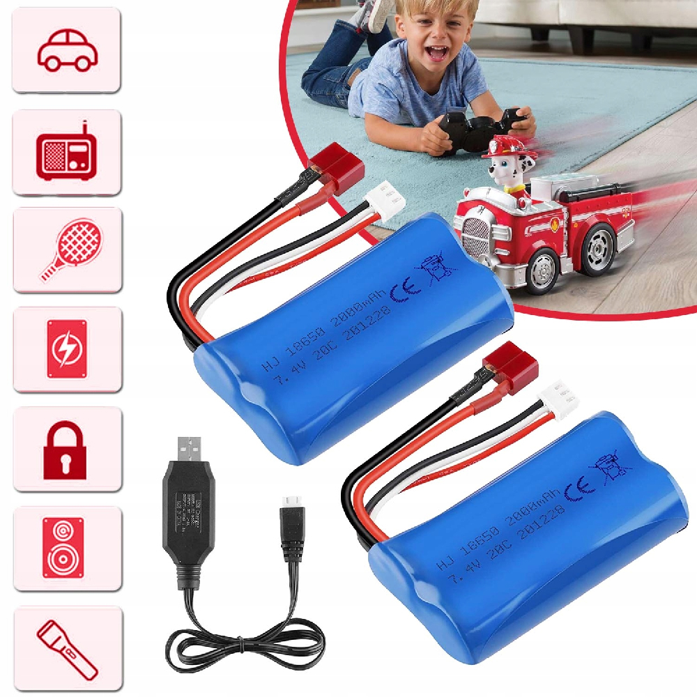 7,4 В, 2000 мАч, 2 литий-ионных аккумулятора со штепсельной вилкой, радиоуправляемая машина