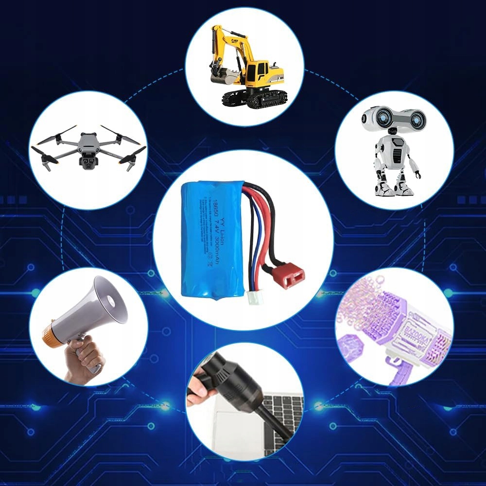 Этот аккумулятор имеет емкость 2000 мАч и напряжение 7,4 В, что позволяет широко использовать его в электронных игрушках, таких как модели автомобилей, лодок и самолетов.