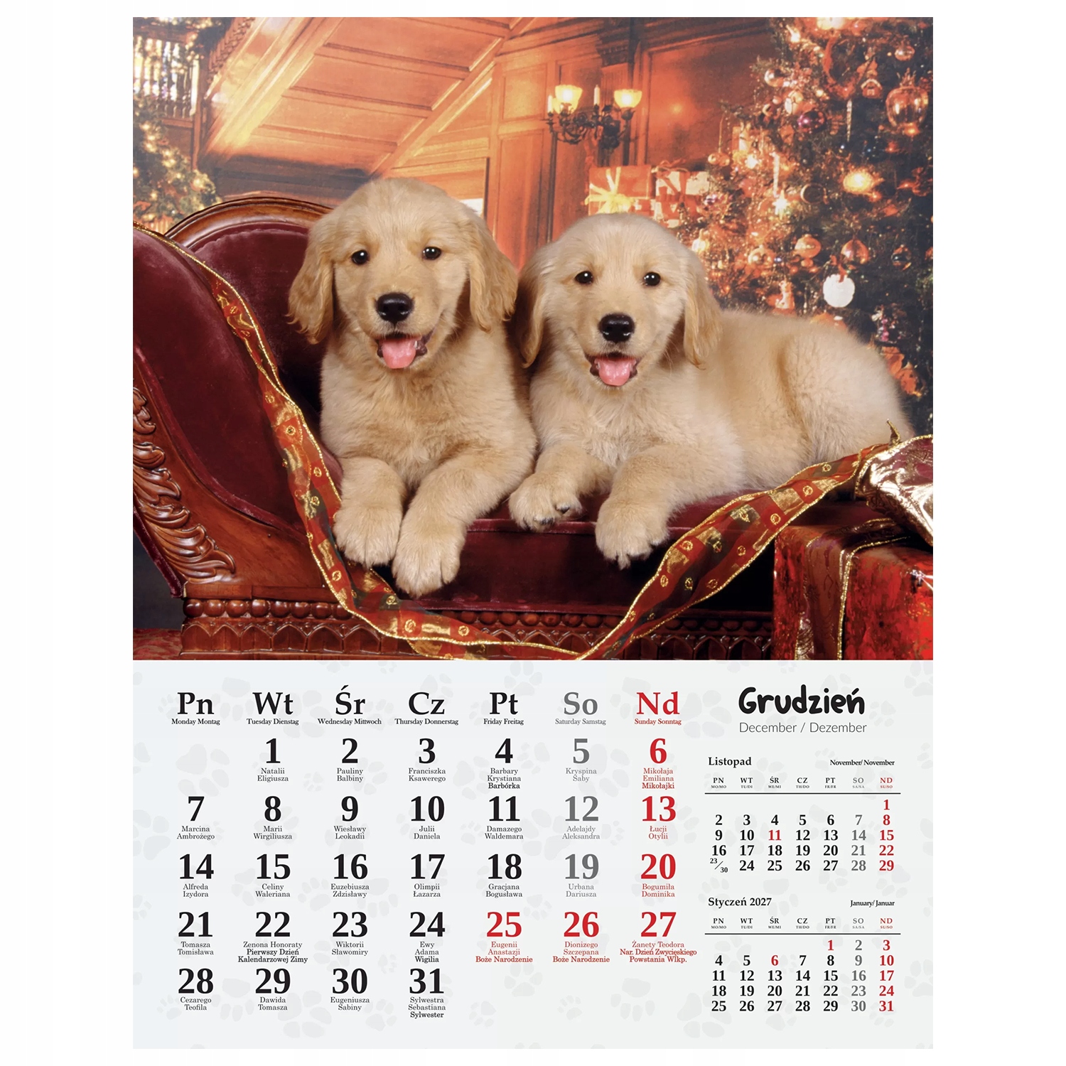 ⭐kalendar 7-Planszowe стена 2026 Собаки 34 x 44 см ежемесячно подвешивание