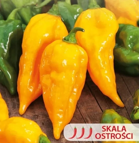 Паприка Хабанеро Желтый - это уникальное разнообразие, которое удовлетворит все энтузиасты острых вкусов. Его интенсивно желтые, маленькие и слегка морщинистые фрукты характеризуются необычайной резкостью, благодаря которой они идеально подходят для приготовления различных соусов, пастов и маринадов .