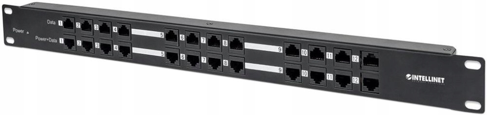 12-портовая пассивная патч-панель PoE — это решение, внедряющее в сеть стандарт Power over Ethernet. Он имеет 12 входных портов RJ-45, 12 выходных портов RJ-45 + источник питания PoE, металлическую конструкцию. Продукт имеет высоту 1U, монтируется в 19-дюймовую стойку и совместим с категорией 5e.