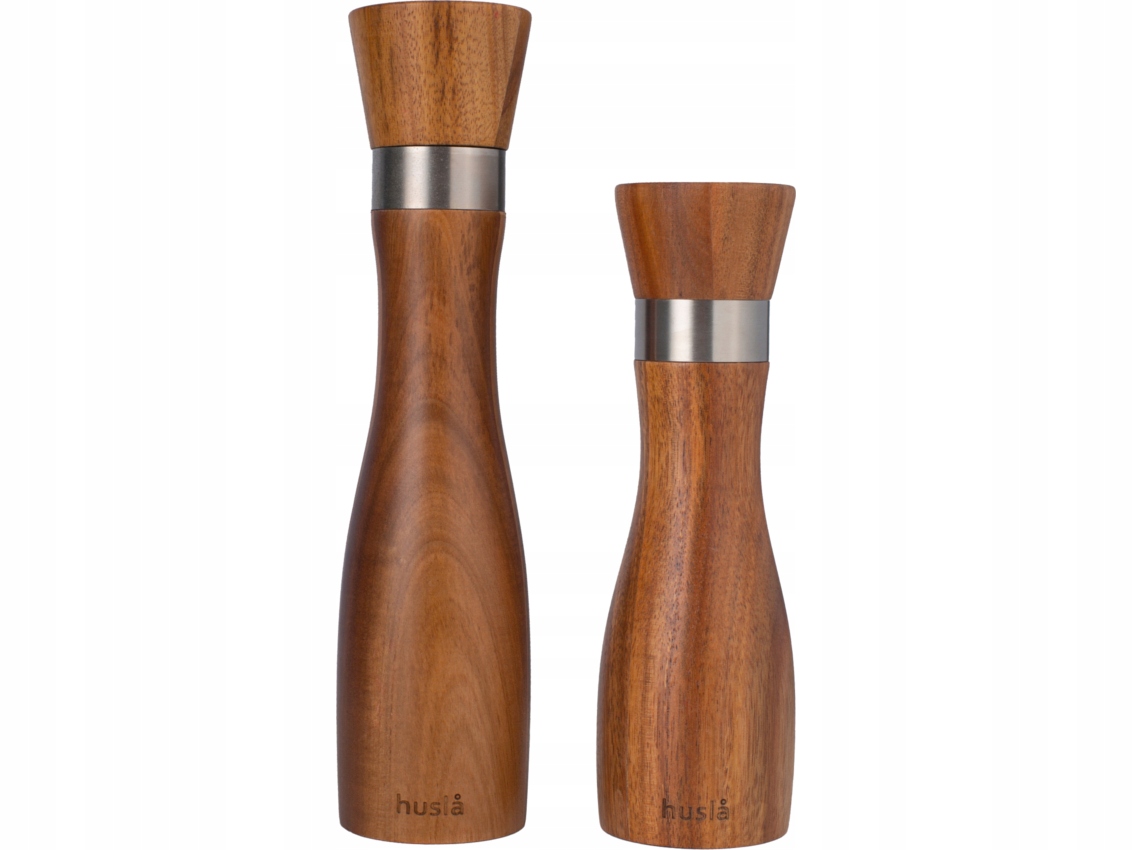 Набор мельницы для перца и соли изготовлен из экзотической древесины акации. Благодаря красивой текстуре древесины акации кофемолки прекрасно смотрятся в любой обстановке.