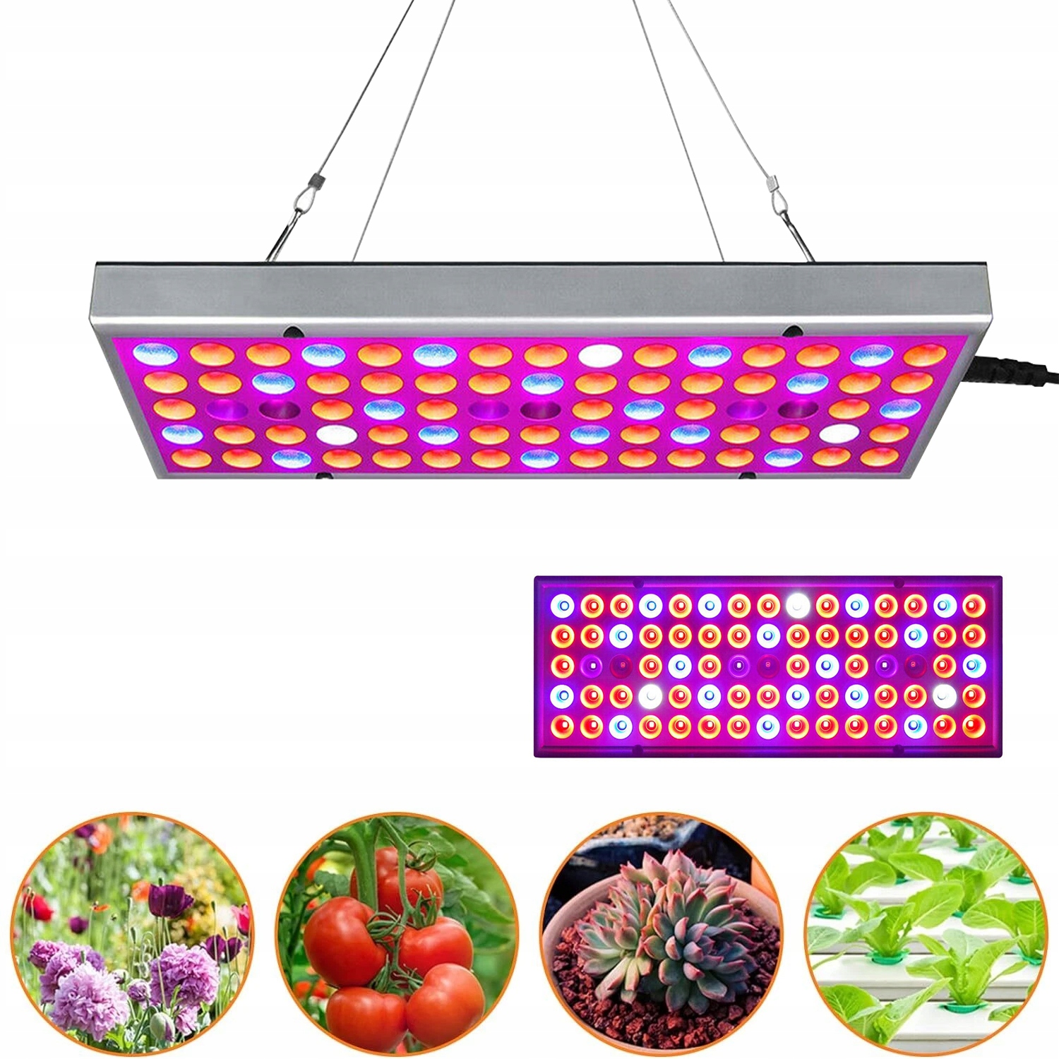 - ЛЕГКАЯ УСТАНОВКА: Установить этот светодиодный светильник для растений проще с помощью подвесных комплектов. Простая конфигурация, светильник можно собрать вручную, без использования дополнительных инструментов. Просто повесьте четыре стальных троса на заднюю часть пластины, и вы сможете повесить ее где угодно.