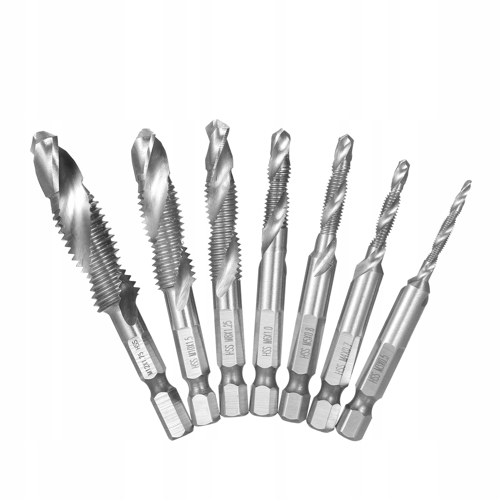 7 шт. комбинированное сверло и нарезание резьбы с метрической резьбой HSS M3-M12, бит 0A