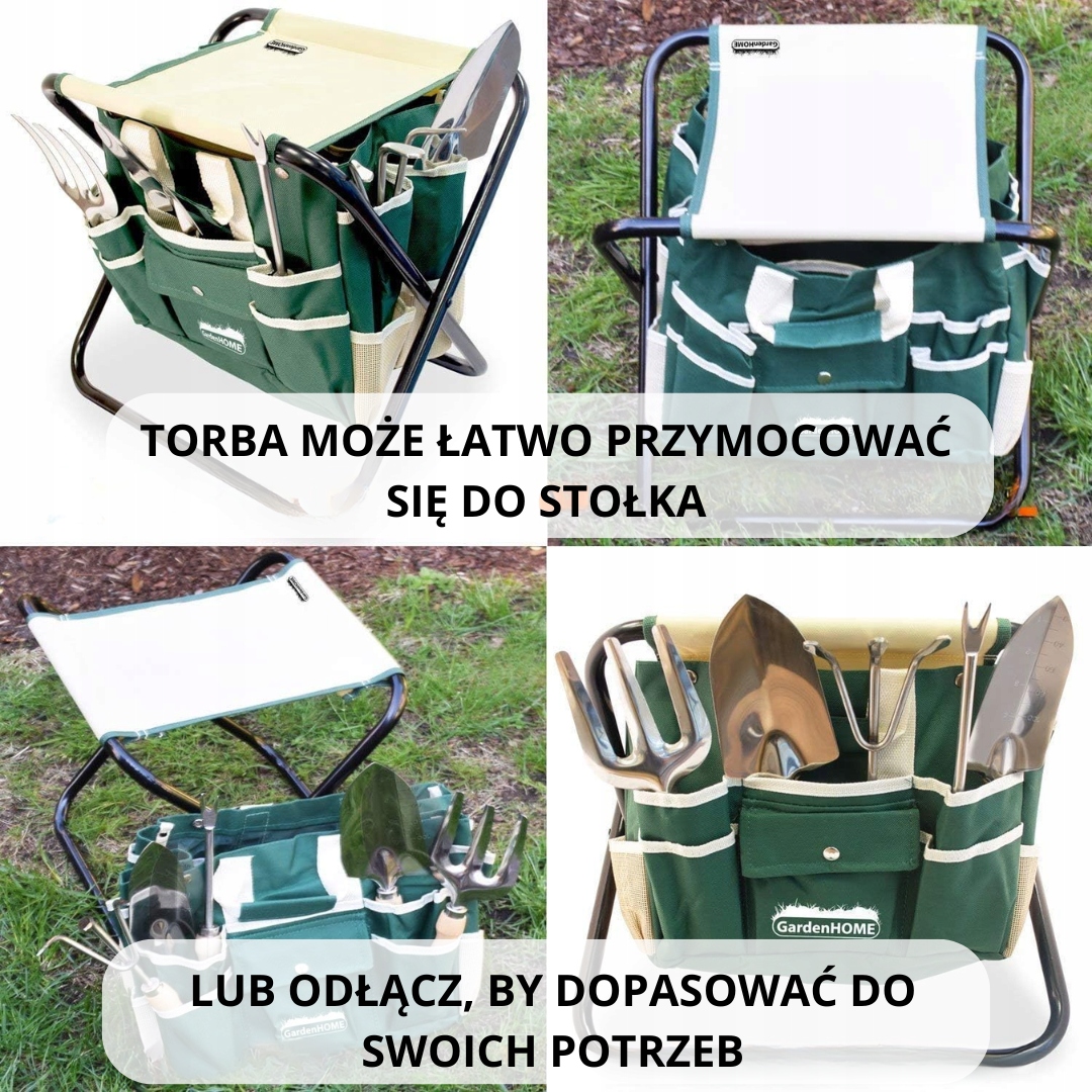 Набор садовых инструментов, набор инструментов из нержавеющей стали из 7 предметов, прочный складной табурет, съемная брезентовая сумка для покупок, органайзер для садовых инструментов