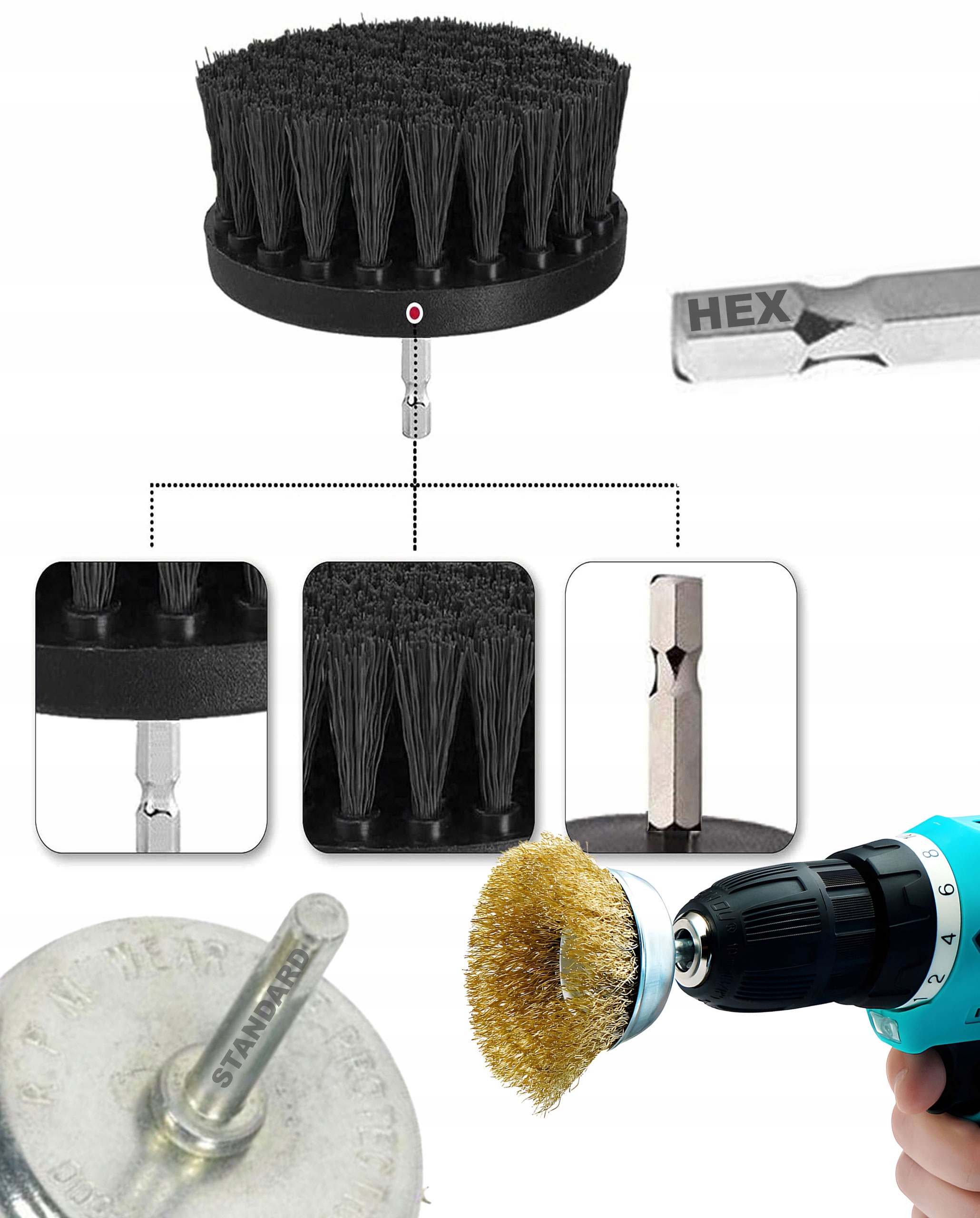 ✅ Новая модель в Польше! / h2>➡️ В набор входят 3 нейлоновые щетки и 5 проволочных щеток!