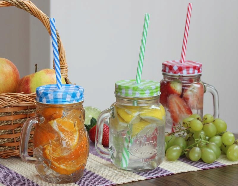 Прозрачные банки позволяют оригинально подать яркие напитки, коктейли с фруктами, лаймом или мятой, которые обязательно порадуют всех присутствующих.