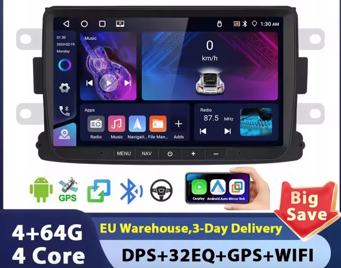 8-дюймовый IPS-РАДИО 2DIN ANDROID 13 Dacia Renault CAN 4/64 ГБ GPS-камера