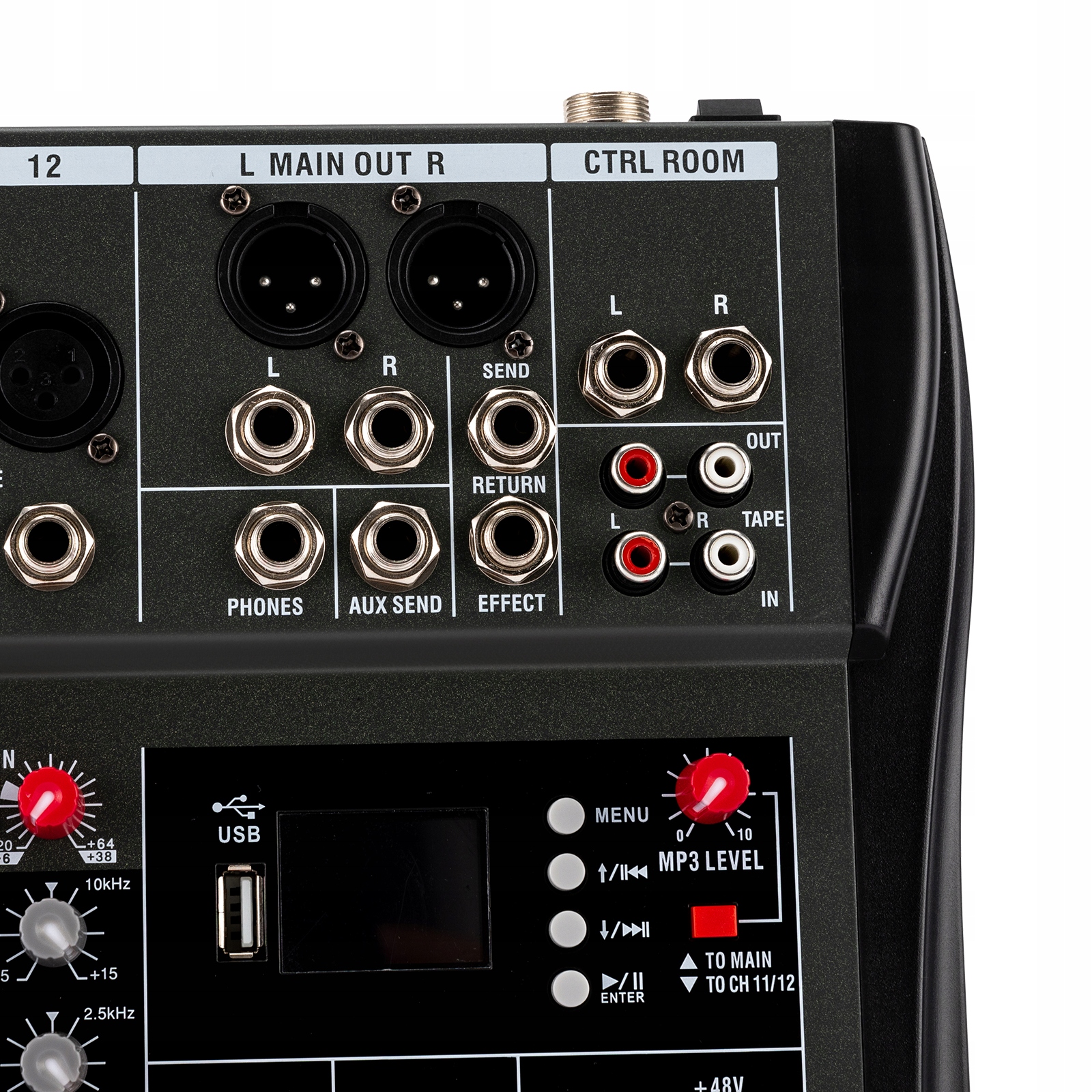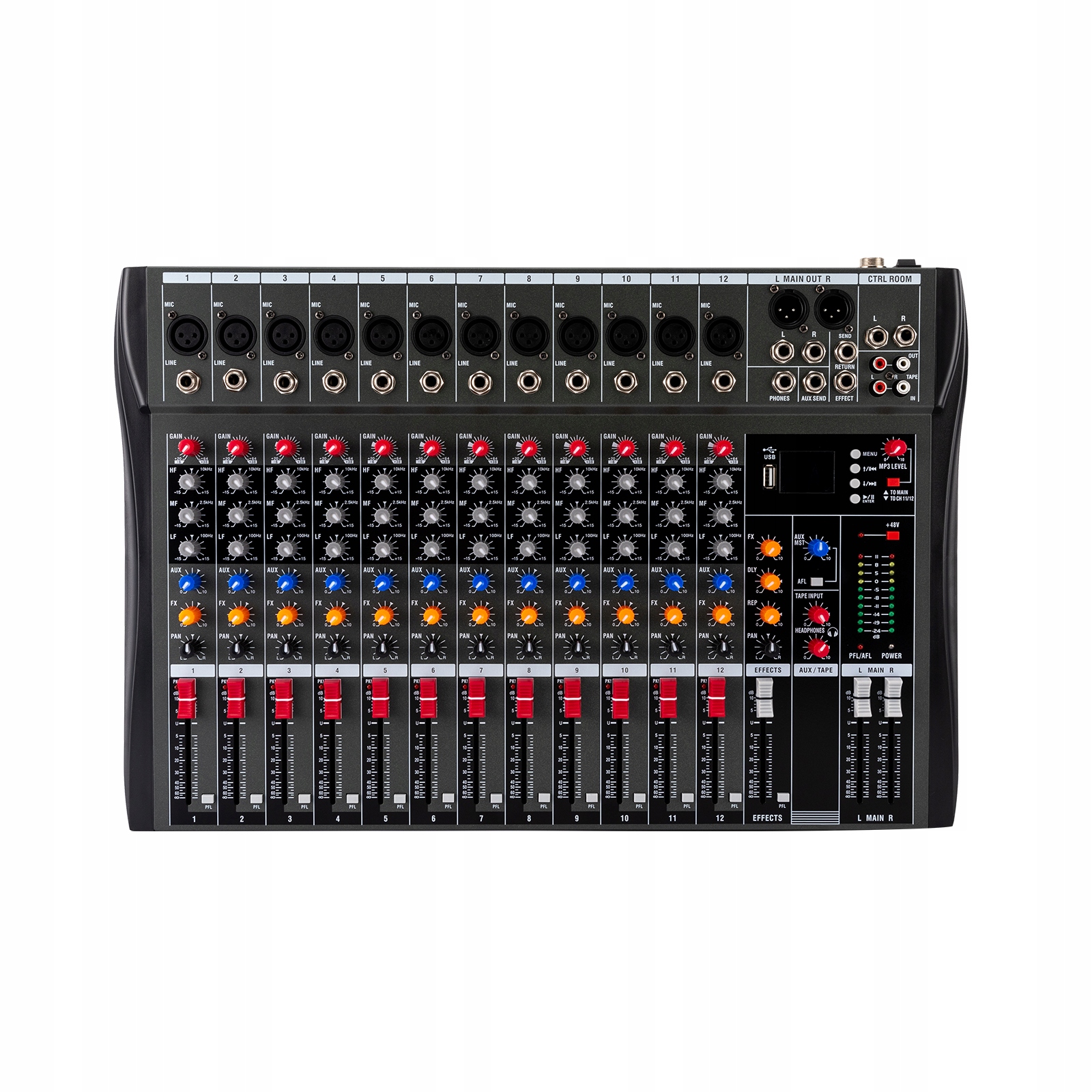 12-канальный микрофонный вход: аудиомикшер идеально подходит для подключения нескольких устройств, поскольку он имеет 12 каналов. В то же время он точно обрабатывает различные аудиосигналы для создания идеального звука.
