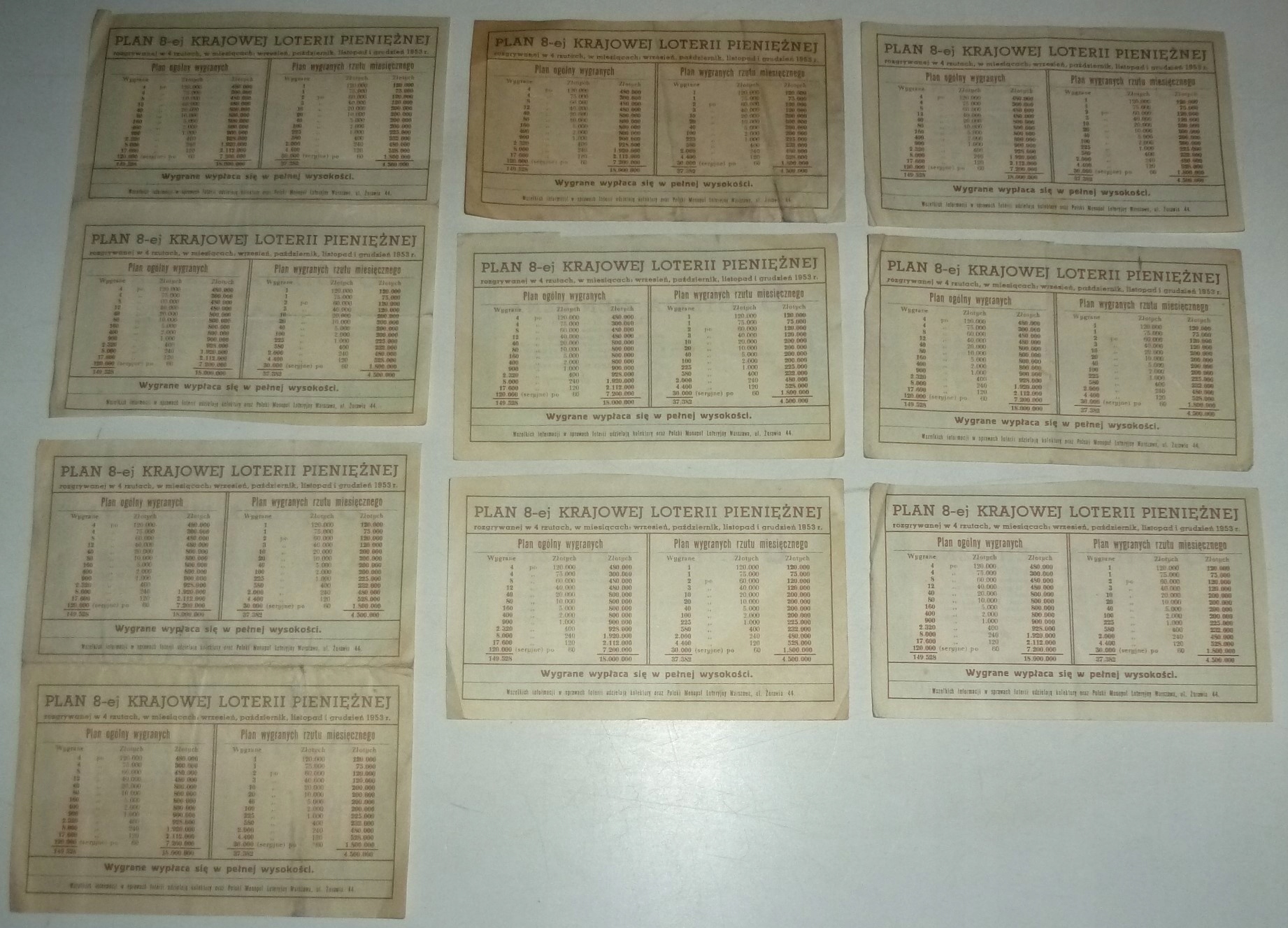 8 НАЦИОНАЛЬНАЯ ДЕНЕЖНАЯ ЛОТЕРЕЯ 1953 года, набор из 10 билетов.