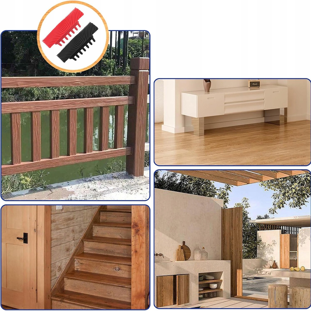 - Прозрачная древесная текстура: Поверхность древесного зерна прозрачная и деликатная. Сначала нанесите основу для деревянного зерна, подождите, пока он не иссякнет, а затем нанесите верхний слой. Передайте инструмент, прежде чем верхний слой полностью высохнет, чтобы создать уникальную текстуру через несколько минут. Быстро и эффективно! 🕒🌳