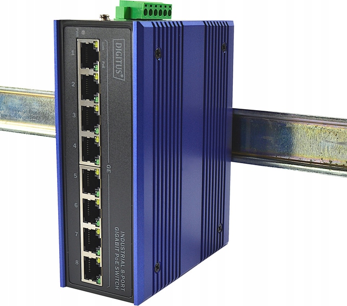 DIGITUS 8-портовый гигабитный промышленный коммутатор PoE, неуправляемый