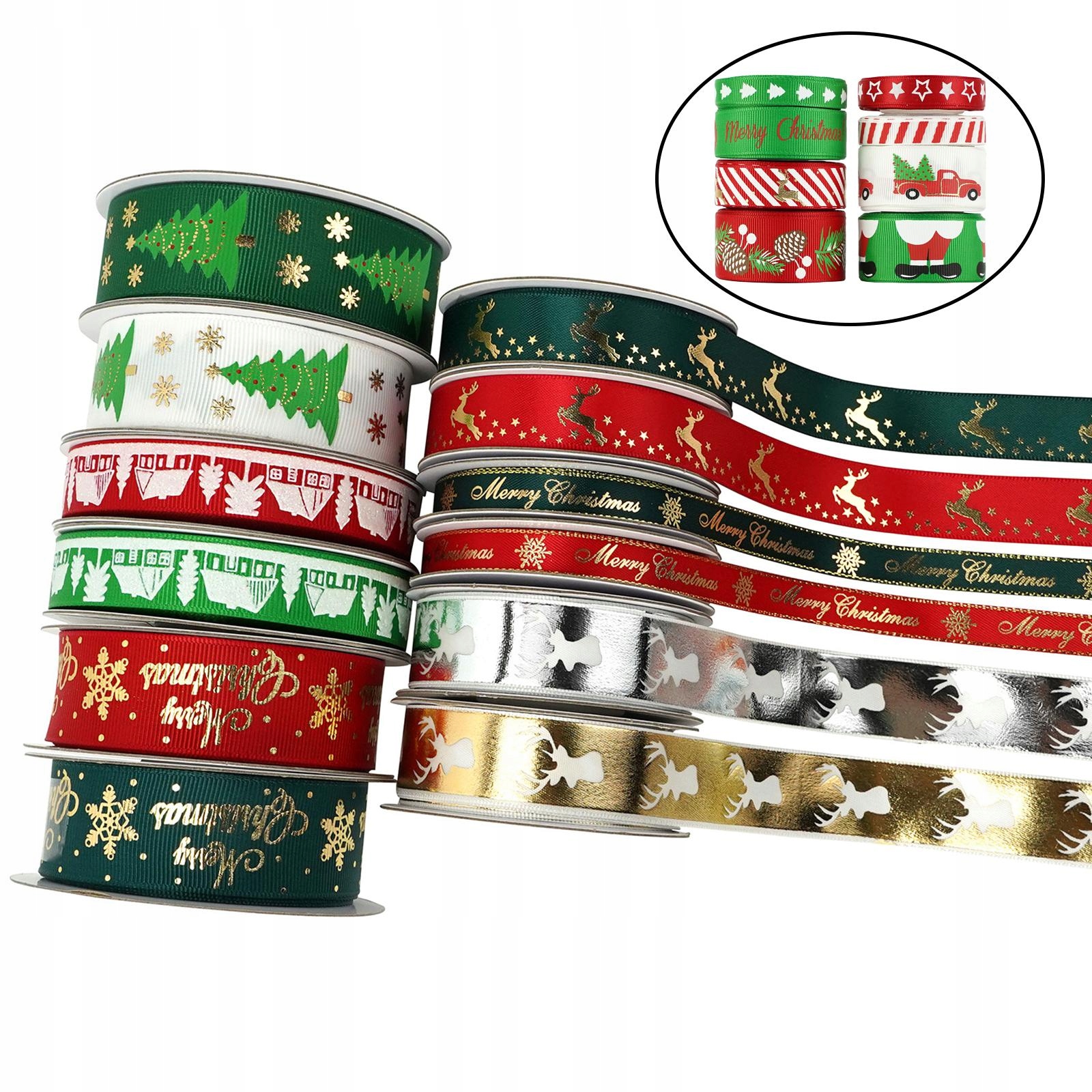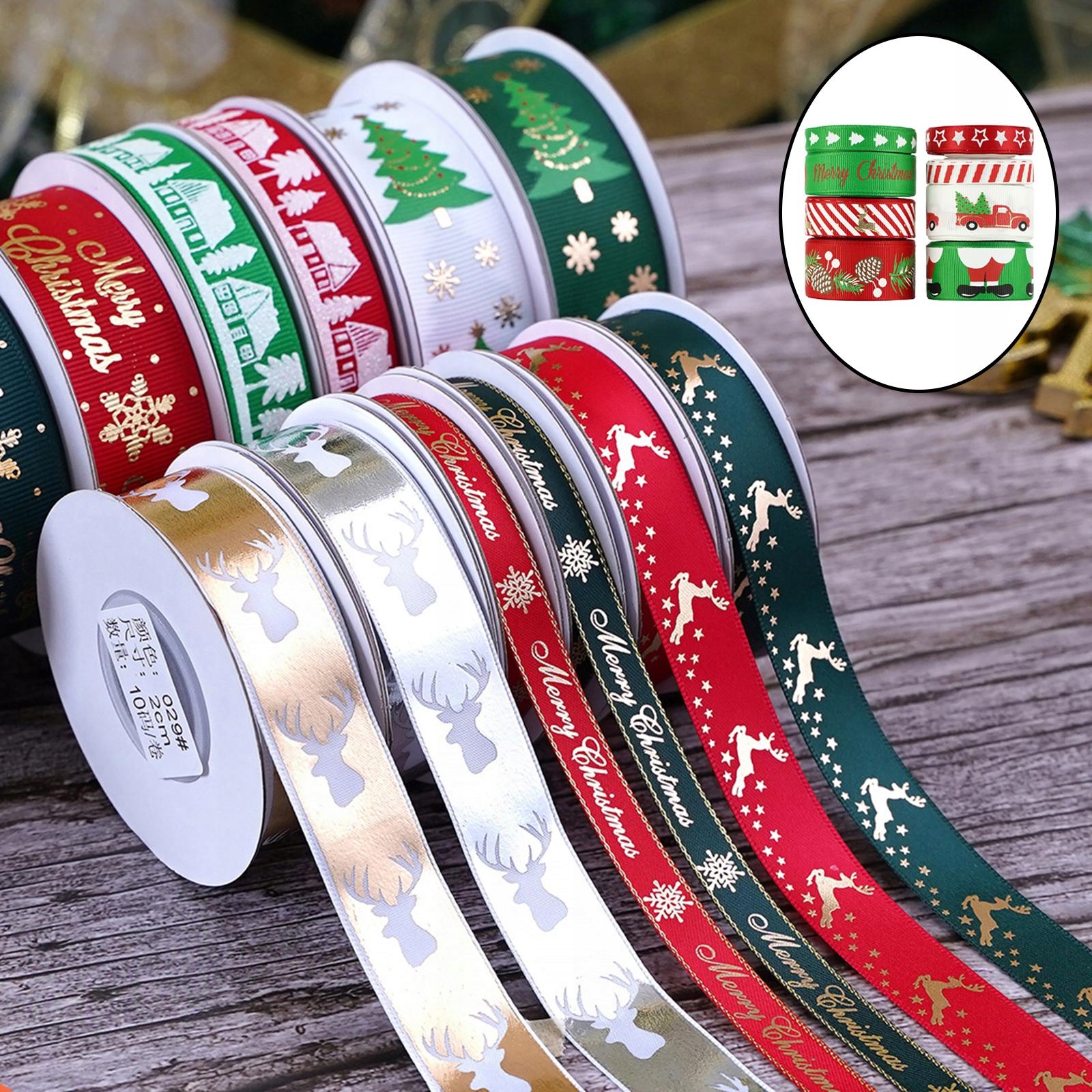 8 рулонів різдвяних стрічок із принтом Grosgrain, поліестерова атласна стрічка A