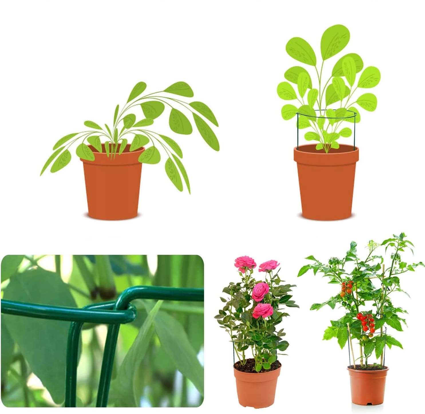 Опорные кольца для растений изготовлены из стали с темно-зеленым пластиковым покрытием. , трудно сгибается, устойчивый, водонепроницаемый, устойчивый к ржавчине, не выцветает, прочный и многоразовый. Темно-зеленый цвет гармонично сочетается с растениями, почти незаметен и очень естественен.