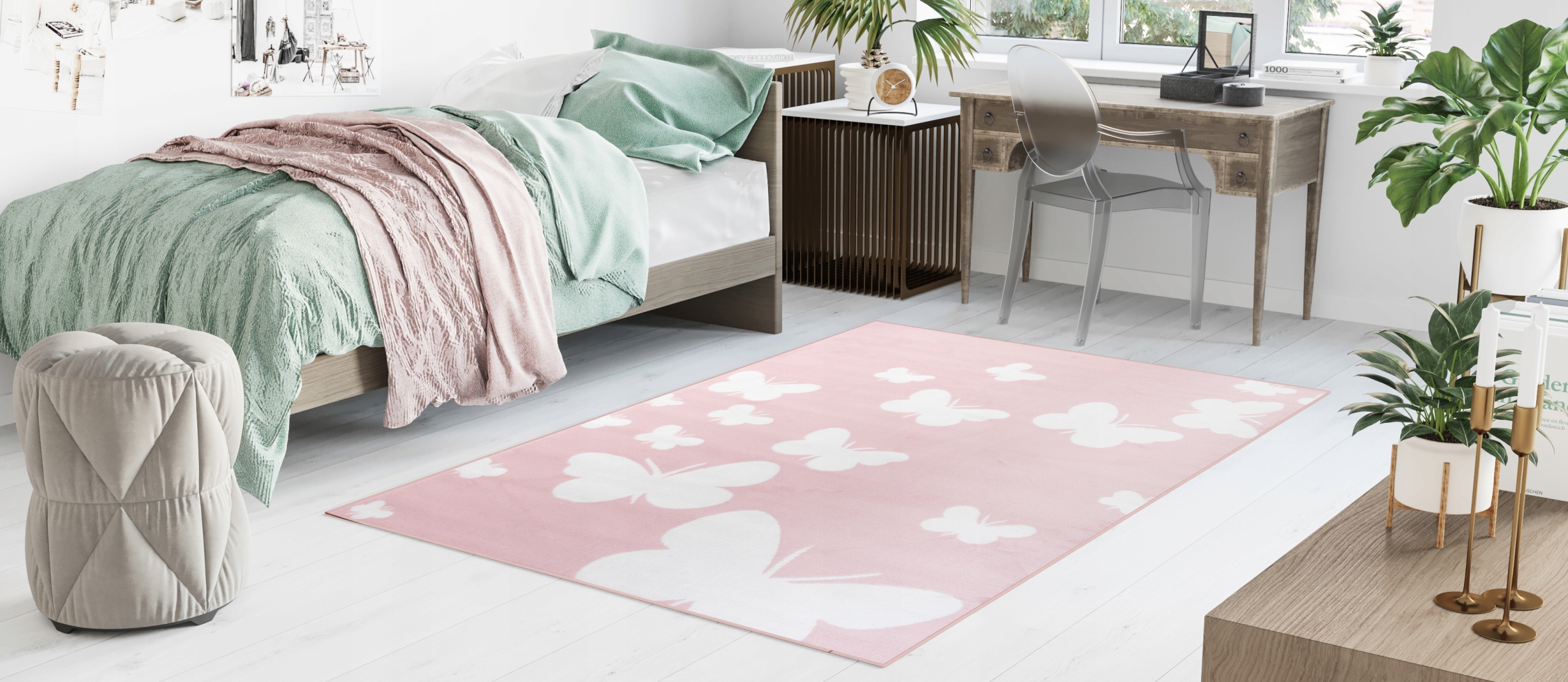 Их очень легко чистить, в том числе пылесосом и поверхностной влажной уборкой с использованием шампуней. Также они имеют высокий коэффициент теплопроводности, поэтому их можно использовать в помещениях с теплым полом. Коллекция ковров PINKY включает в себя широкий выбор детских рисунков в пастельных тонах.
