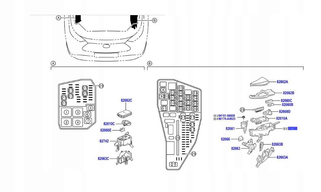 82740-0E070 ЦЕНТРАЛЬНАЯ ЧАСТЬ ЛЕВОГО БЛОКА ПРЕДОХРАНИТЕЛЕЙ HIGHLANDER