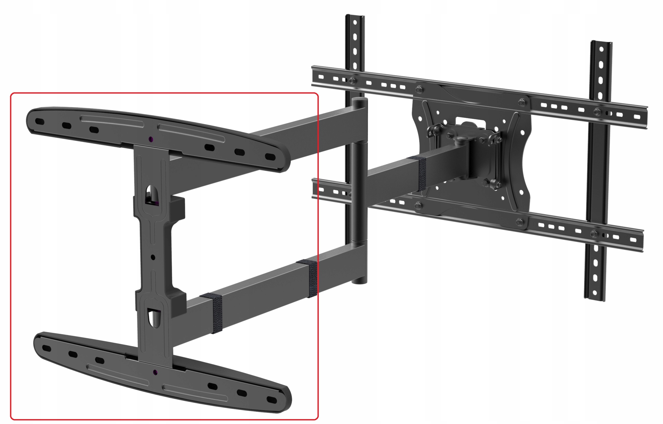- Благодаря длинным кронштейнам длиной 83 см держатель можно установить под очень большим углом, вплоть до 90° к стене, а также к углу комнаты. Конечно, возможна установка и перед стеной. Вы можете расположить держатель перпендикулярно стене для телевизора шириной до 150 см! На практике можно установить телевизоры диагональю до 65 дюймов перпендикулярно стене.