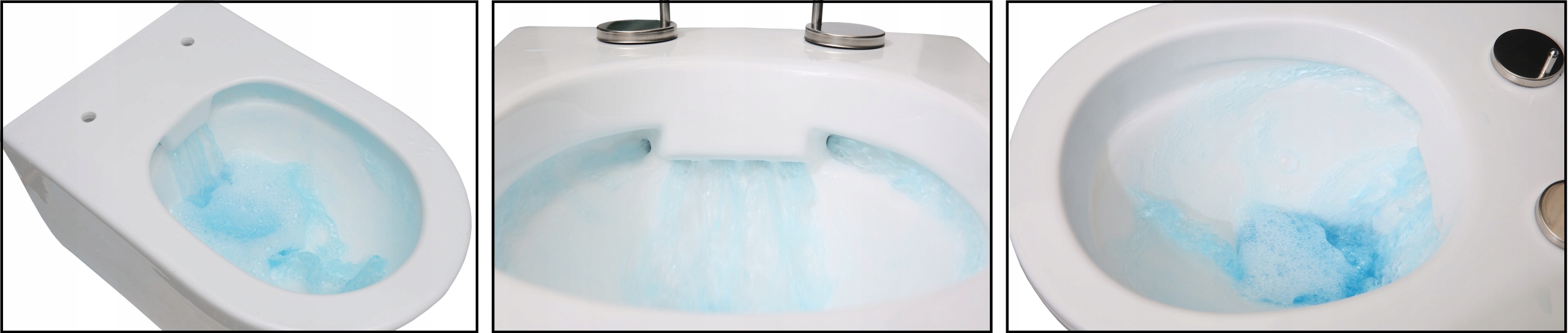 Система ополаскивания с открытой чашей, так называемая без обода (воротника), что обеспечивает более легкую гигиену и предотвращает рост бактерий.