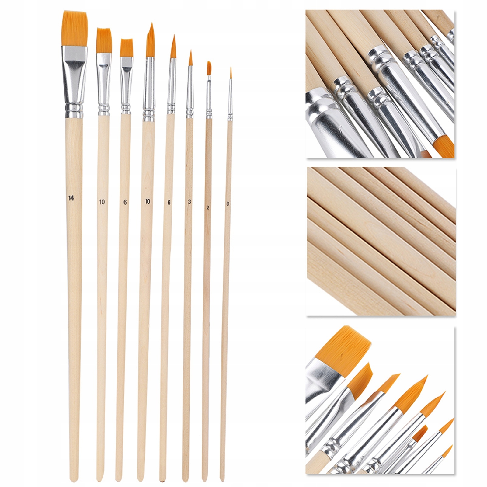 - Характеристика: нейлоновые воски, толстые воски для ручек, твердый кончик ручки, хорошая эластичность, легко чистится, сильное впитывание пигмента, подходит для масляной живописи, гуаши, акриловые, текстильные краски и т. д.