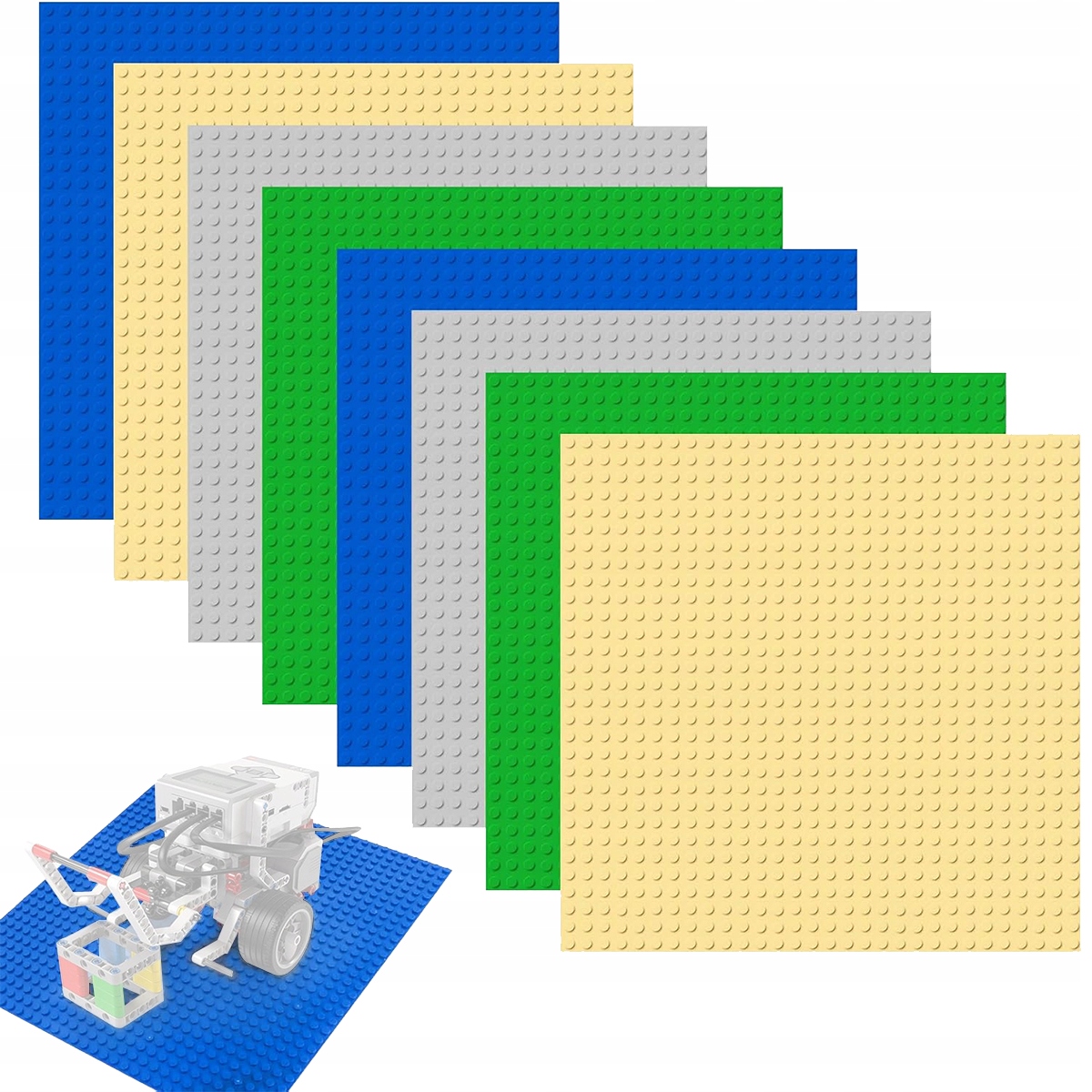 8 базовых пластин классического строительного блока, на 100 % совместимые со всеми основными брендами, со шпильками 32*32 (4 цвета, по 2 штуки каждого цвета)