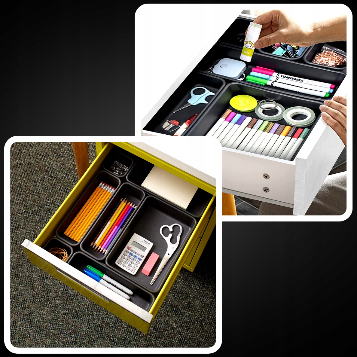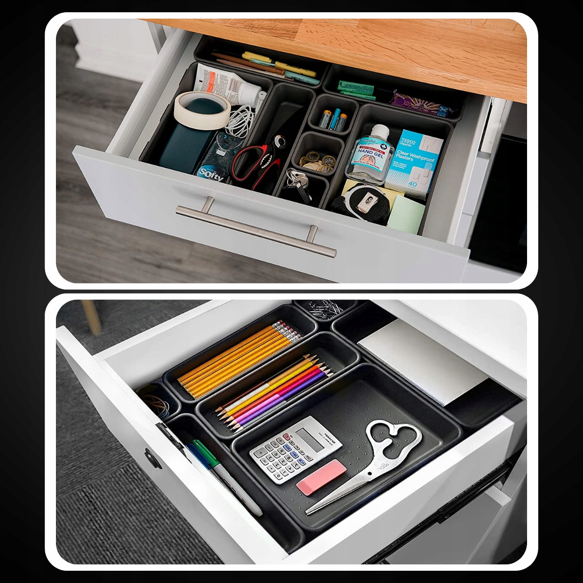 ✅ОПТИМИЗИРОВАННОЕ ИСПОЛЬЗОВАНИЕ ПРОСТРАНСТВА: Набор органайзеров идеально организуют пространство в ящике, на полке или на столе, помогая вам оставаться организованными и эффективно использовать имеющееся пространство.