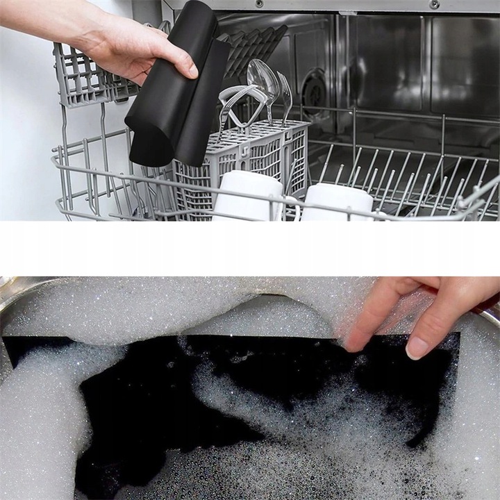Использование коврика при приготовлении на гриле, жарке или запекании значительно помогает поддерживать чистоту гриля или духовки и уменьшает загрязнение. Коврик устойчив к воздействию моющих средств, поэтому его можно мыть вручную или в посудомоечной машине. После высыхания коврик пригоден для дальнейшего использования.