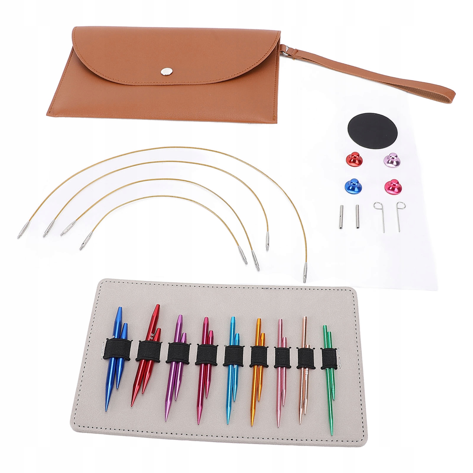 2. С сумкой: набор круговых спиц поставляется с гибким и красивым футляром из полиуретана для аккуратного хранения всех входящих в комплект спиц и аксессуаров