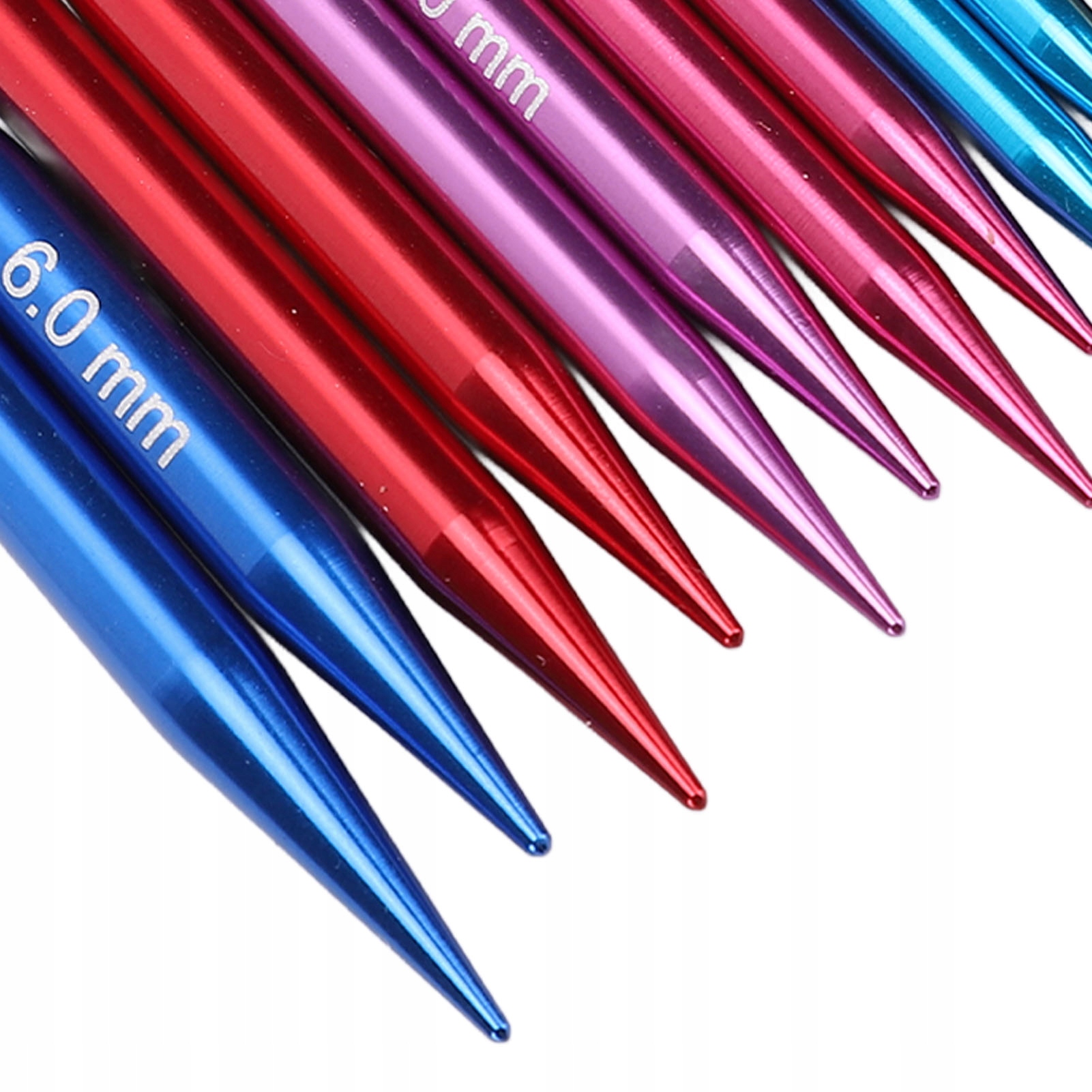 - Размеры круглых спиц: прибл. 3,0 мм/0,12 дюйма, 3,25 мм/0,13 дюйма, 3,5 мм/0,14 дюйма, 3,75 мм/0,15 дюйма, 4,0 мм/0,16 дюйма, 4,5 мм/0,18 дюйма, 5,0 мм/0,20 дюйма, 5,5 мм/0,22 дюйма, 6,0 мм/0,24 дюйма (2 шт. каждый)