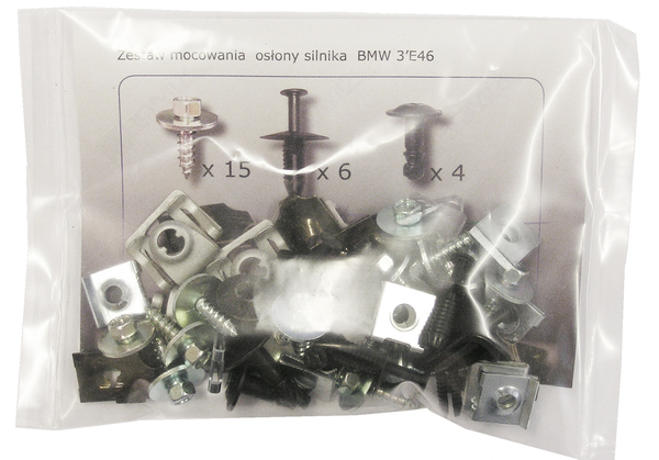 Предметом предложения является комплект клипс для крепления кожуха двигателя автомобилей BMW модели E46. Изделие изготовлено из высококачественных материалов, обеспечивающих долговечность и надежную сборку.