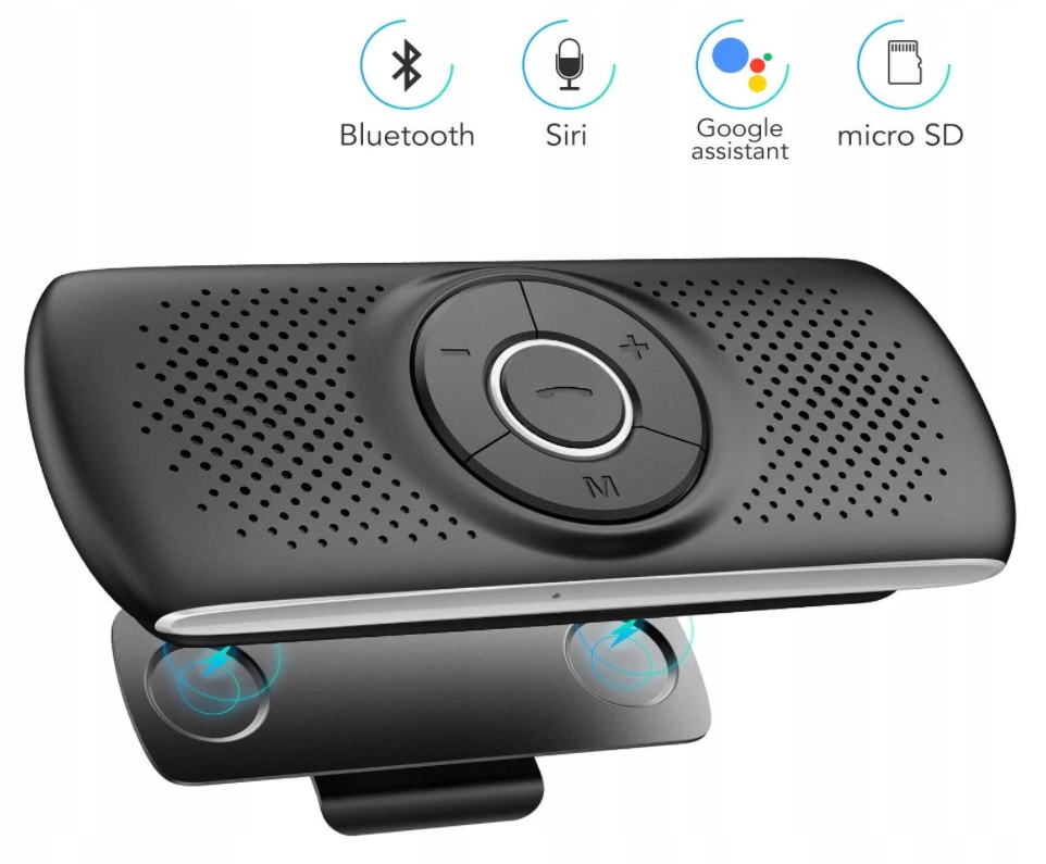 Комплект громкой связи AGPTEK Bluetooth 5 с набором динамиков для голосовых команд Siri Google Assistant и солнцезащитным козырьком с поддержкой TF-карты, автоматическое подключение, черный