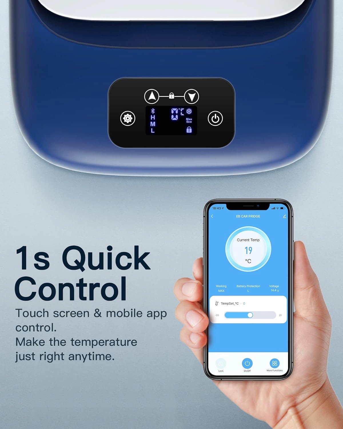 Вы также можете напрямую коснуться панели управления, чтобы использовать автомобильный холодильник. С интеллектуальным контролем температуры. Холодильник оснащен 3-х ступенчатой системой защиты (H/M/L).
