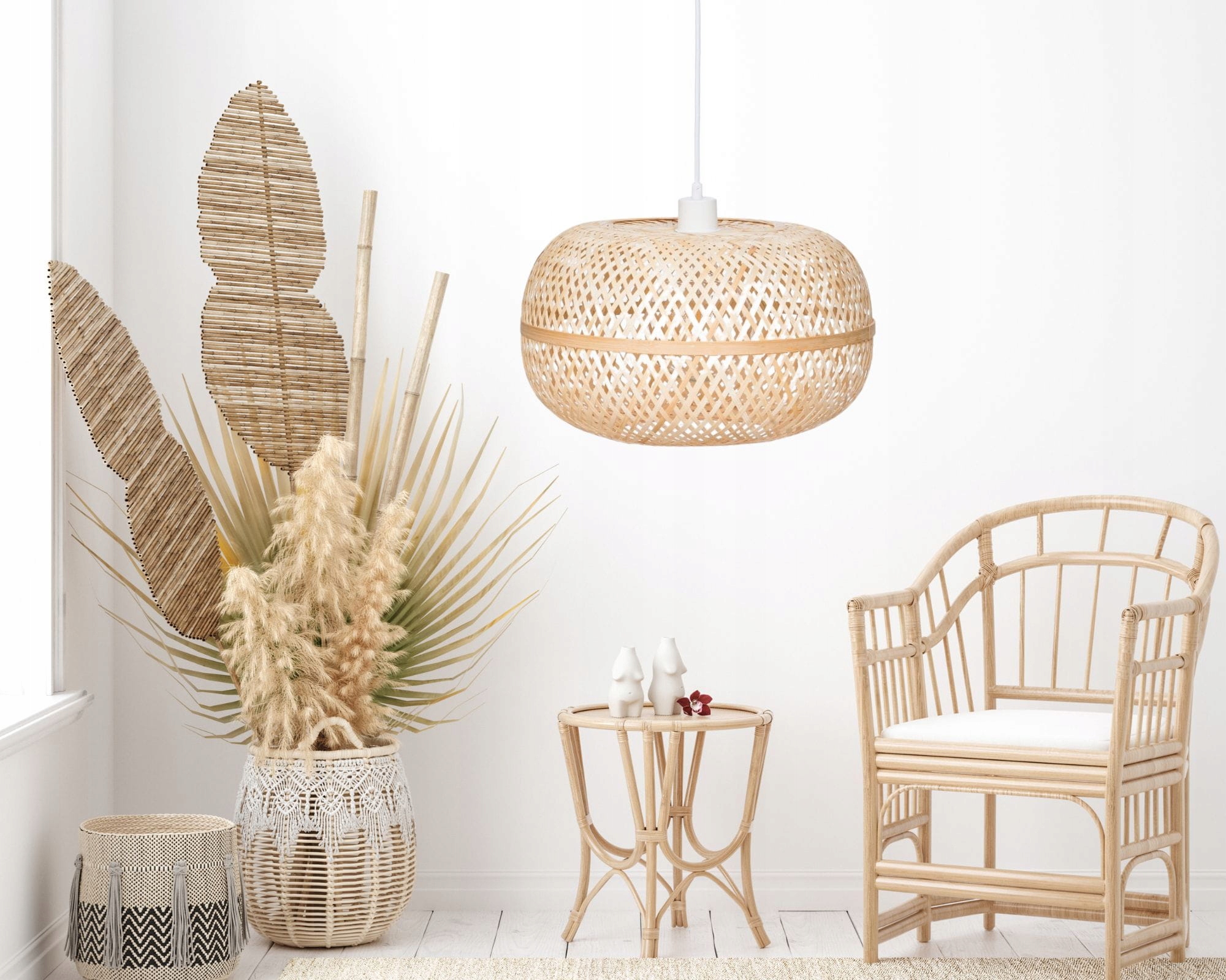 Модель принадлежит к коллекции бамбуковых абажуров ручной работы. Он идеально вписывается в интерьеры, вдохновленные природой. Он вписывается в скандинавский стиль, а также прекрасно дополнит композицию в стиле БОХО.