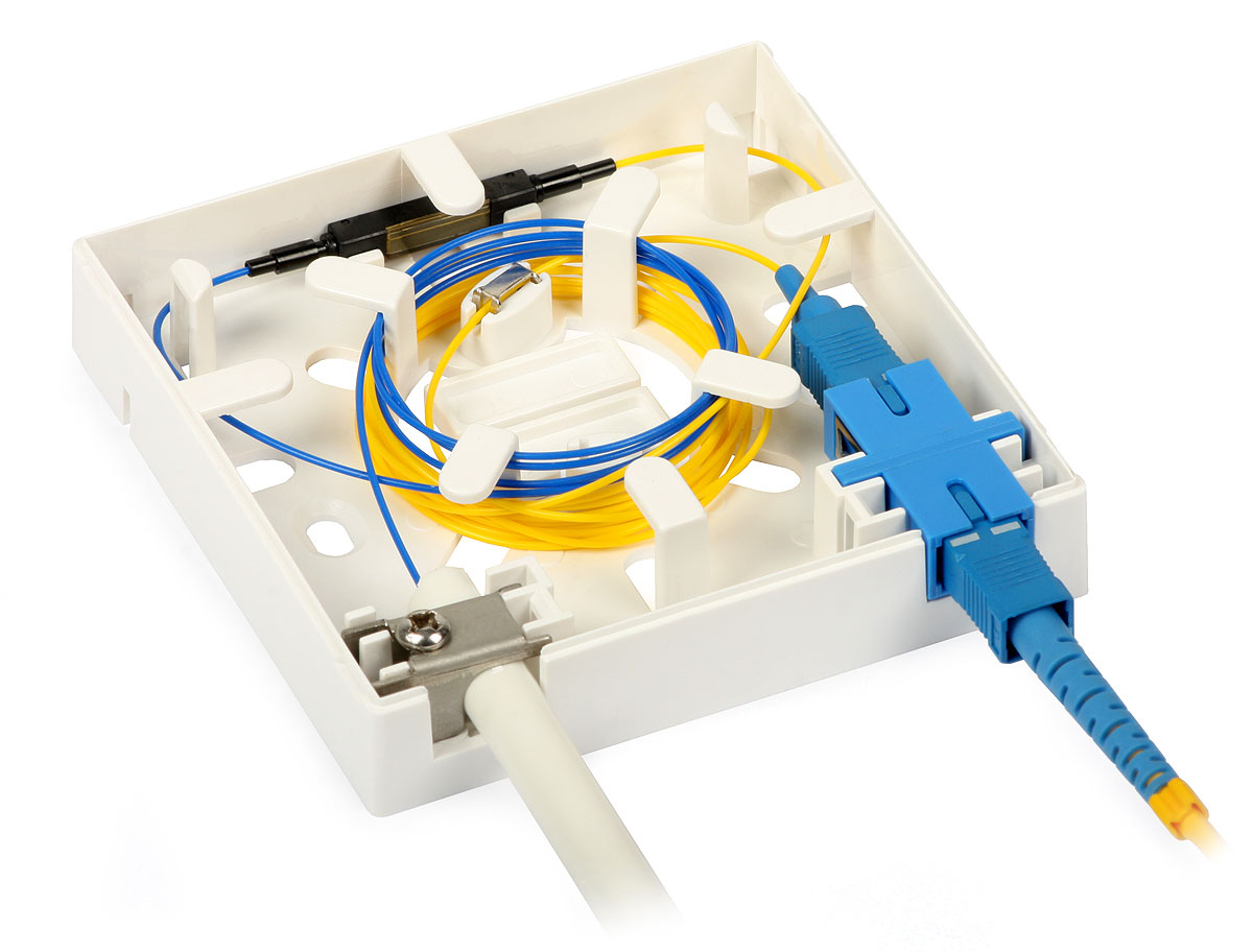 Коробка предназначена для настенного монтажа в конце оптоволоконной линии у конечного пользователя. Он используется во внутренних оптоволоконных сетях, т.е. в многоквартирных домах и офисах. Идеально подходит для систем FTTH, FTTO или FTTD.