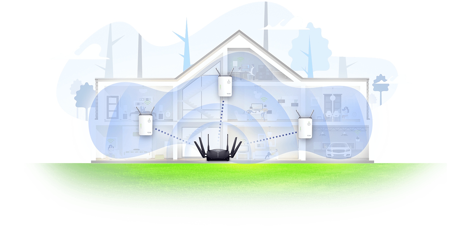 Просто подключите больше удлинителей серии DAP-1620 по всему дому и соедините их с новыми маршрутизаторами D-Link EXO, поддерживающими технологию Wi-Fi Mesh.