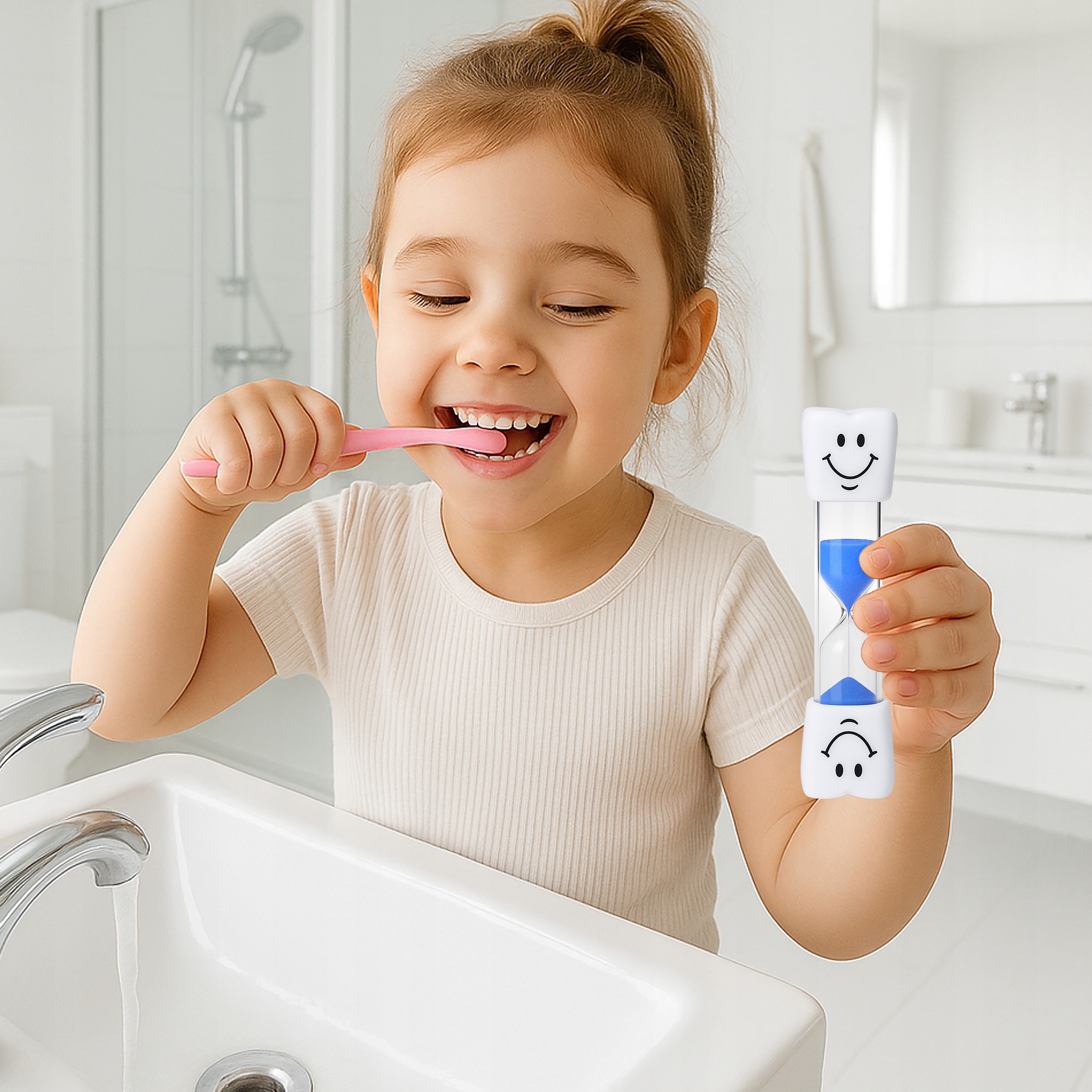 Цвет красочных песочных часов в форме улыбающегося зуба составляет примерно 2 минуты.