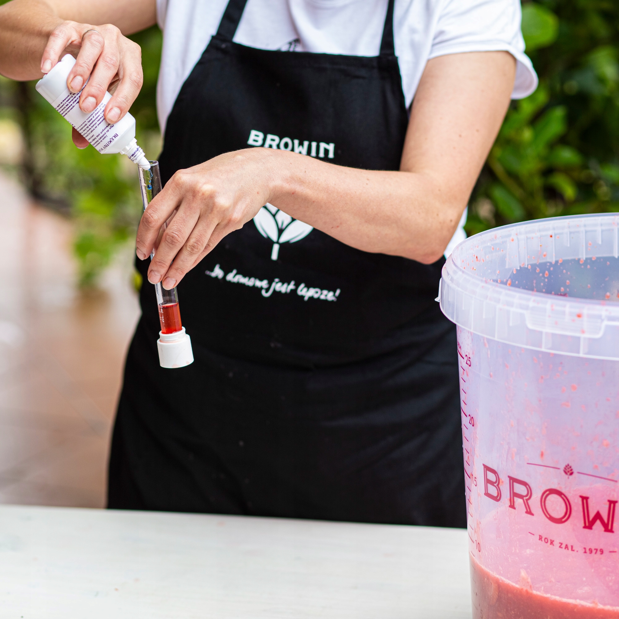 Измерение кислотности включает в себя титрование кислот, содержащихся в сусле, синим цветом до первого изменения цвета.