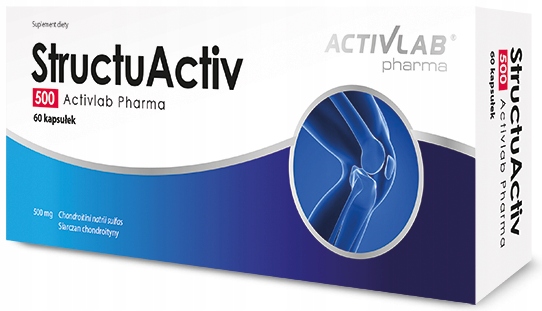 Activlab structuactiv 500 - это пищевая добавка, которая содержит кислый хондроитинсульфат (хондроитини Natry Sulfas). Указано для использования для облегчения симптомов остеоартрита. Рекомендуется в случае воспаления костей и суставов, в случае боли в суставах и для использования в регенерации суставного хряща. Это один из основных компонентов кости и хряща. Он отвечает за предоставление механических и гибких свойств хряща. Хонруитинсульфат ингибирует активность литиевых ферментов в хряще и стимулирование биосинтеза протеогликанов, которые строят суставной хрящ. Подготовка в одной капсуле содержит до 500 мг хондроитинсульфата для защиты суставов. Хонруитинсульфат приводит к четкому снижению боли, ощущаемого в связи с воспалением костей и суставов. Его принятие приводит к значительному улучшению функционирования рук и смягчению утреннего укрепления суставов. Это безопасно и эффективно. Свободно от лактозы и глютена